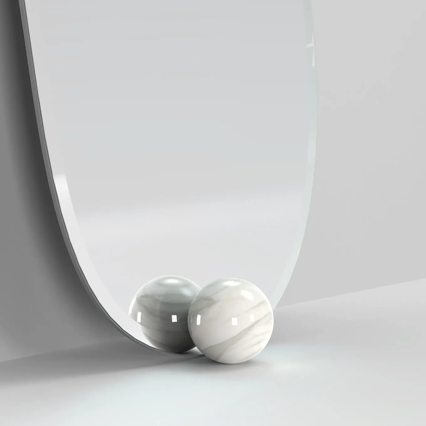 The 1931 Mirror by Artefatto Design Studio draws inspiration from Salvador Dalí’s surrealism, featuring an organic, amorphous shape. The mirror is paired with a Premium Calacatta marble sphere, seemingly holding it in place. The back is Matte Tortora wood lacquered, adding a soft, neutral tone. The Extra Clear Mirror ensures a sharp reflection. It is available in different stones, metals and colors lacquer finishes for the wooden backing.