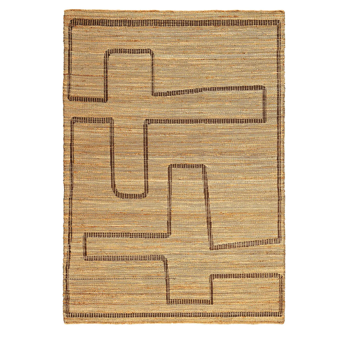 The Aboya rug showcases refined natural tones from hand-spun jute. Handwoven in India, it features a striking tribal motif and subtle profiles, with a reversible design offering two colorways. Available in different sizes. Please ask the Concierge for other informations.