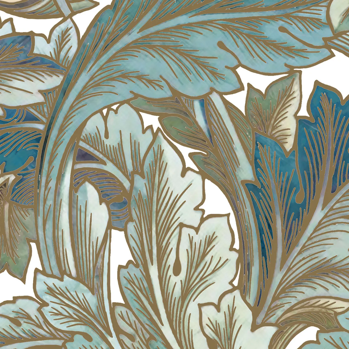 Pricing is per square meter. A collection of large ceramic slabs with an extraordinary visual effect, characterized by a surprising synthesis of aesthetic refinement and practicality. The two motifs are classic: the original revisitation of acanthus and the Art Deco stylization of peacock feathers, having refined golden patterns made with pure gold. Please, contact the Concierge for further information.