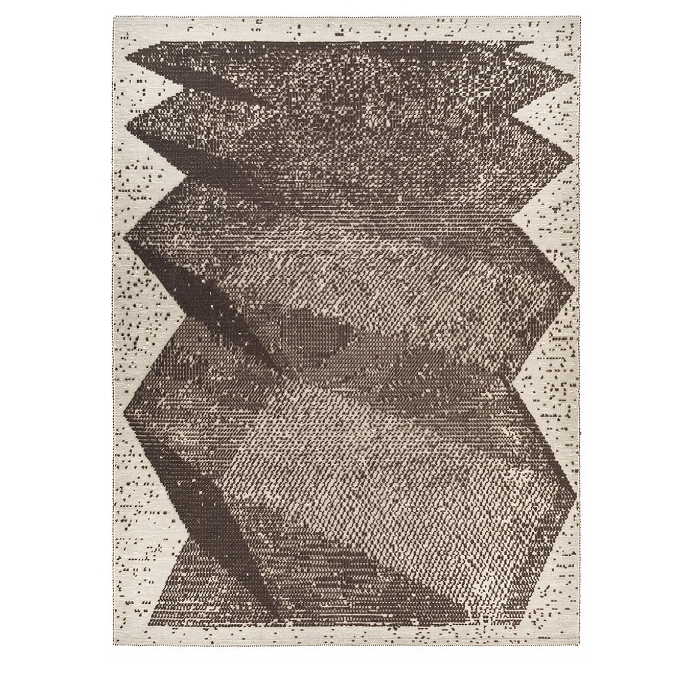This striking carpet, with its solid geometric volumes in different shades of grey and the mixing of smooth silk and earthy wool, features a decoration inspired by the first computer graphics of the 60s. Its manufacturing utilizes in innovative ways the traditional Sardinian weaving techniques.