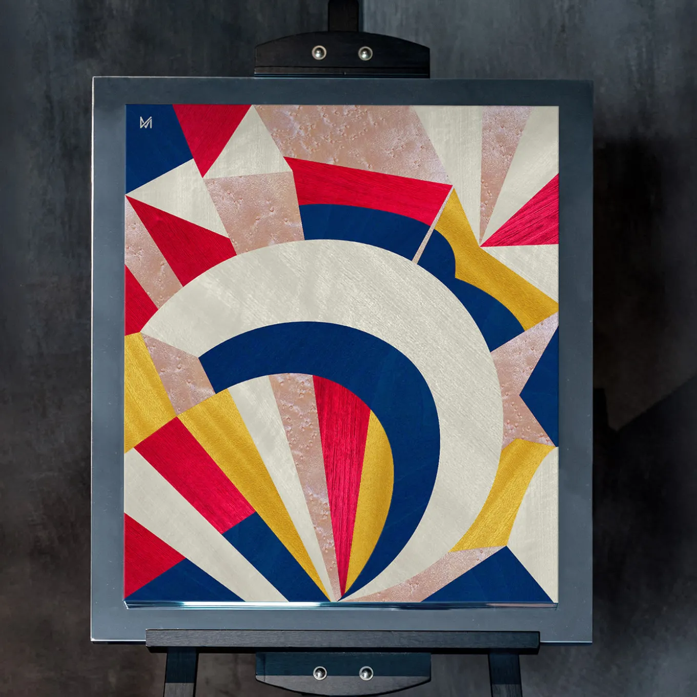 A dynamic geometric design appears to burst from this stunning wood inlay panel, flaunting chromatic effects of blue, yellow, fuchsia, and white. Created by StoryArtist Marzia Boaglio, for the St. Valentine’s edition of her Prima Storia Collection, it narrates the charming tale of a couple’s journey through pregnancy. Alba (Dawn) features the birth of a new day and of a new life, when two become three. Embellished with mirror-finished steel, it will enliven a refined contemporary interior.