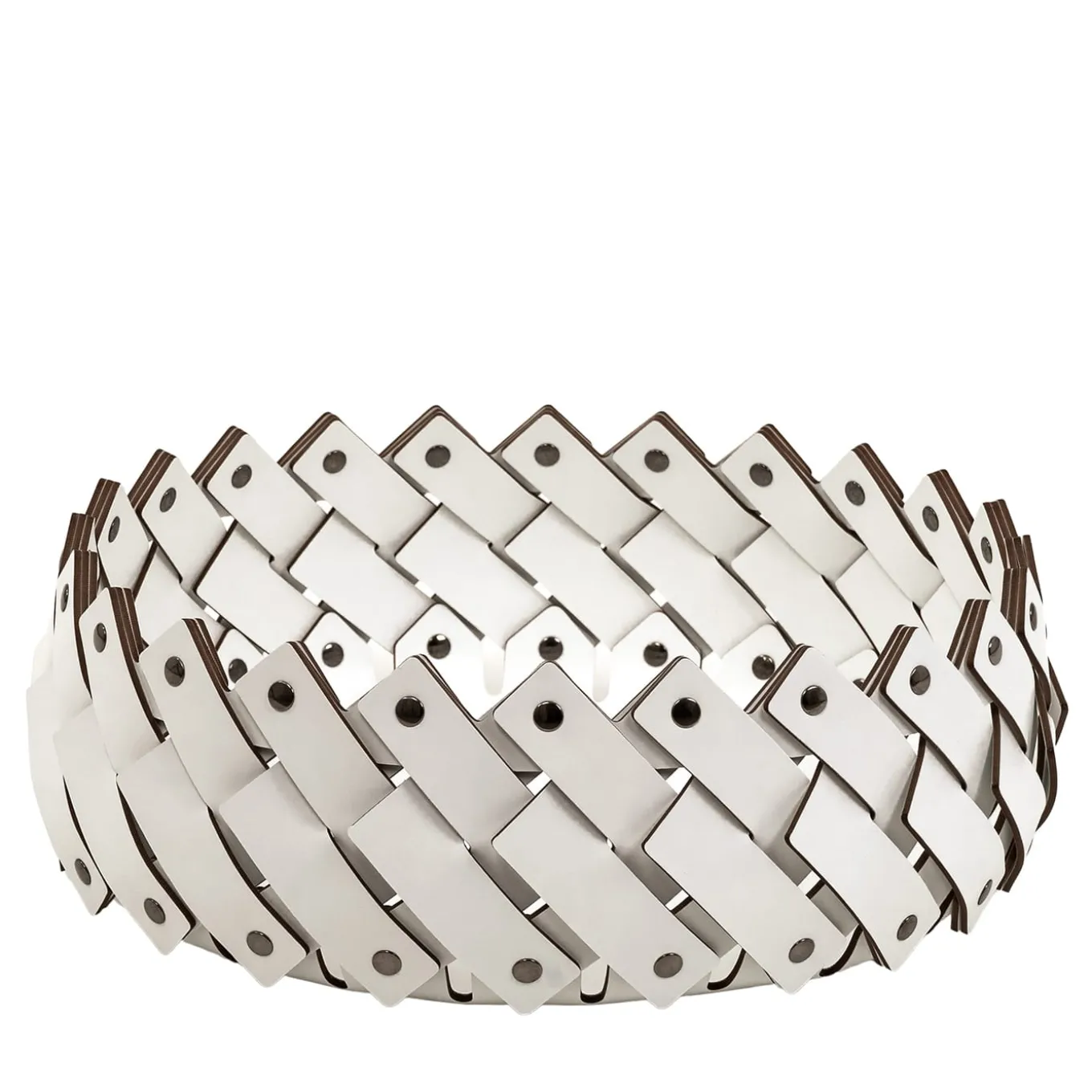 This exquisite basket is part of the Almeria series and is entirely hand woven in eco-friendly leather strips that are water-resistant and easy to clean. Functionality and elegant design coexist in this piece that will be ideal to store and display small items in an entryway, on a living room or a bathroom. Either alone, or combined with other pieces from the same collection, this tray will be a unique addition to any home.