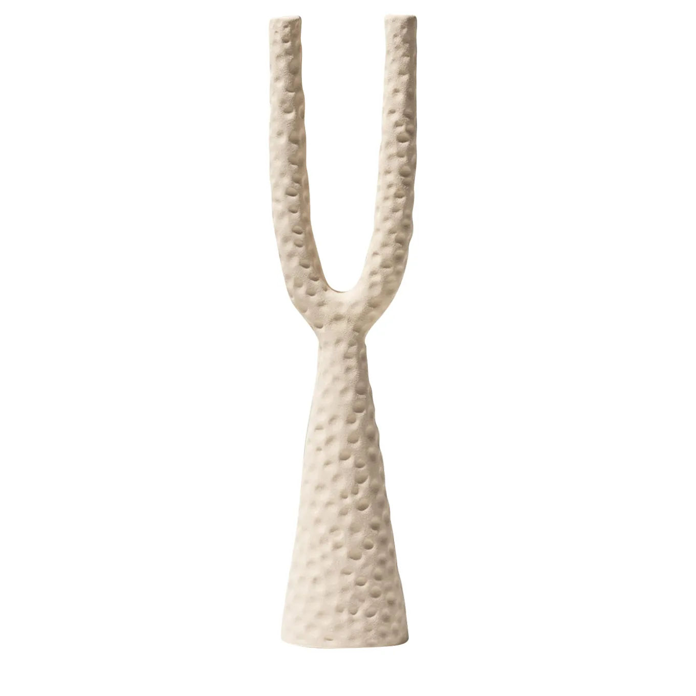This candlestick draws inspiration from mid-20th century designs characterized by soft, organic shapes reminiscent of Morandi’s still lifes. Created through a mold technique, it features a textured terracotta form with a powdery matte glaze applied via airbrushing, enhancing its tactile presence. The sculptural piece invites thoughtful composition alongside complementary vessels, contributing depth and subtle elegance to contemporary interiors.