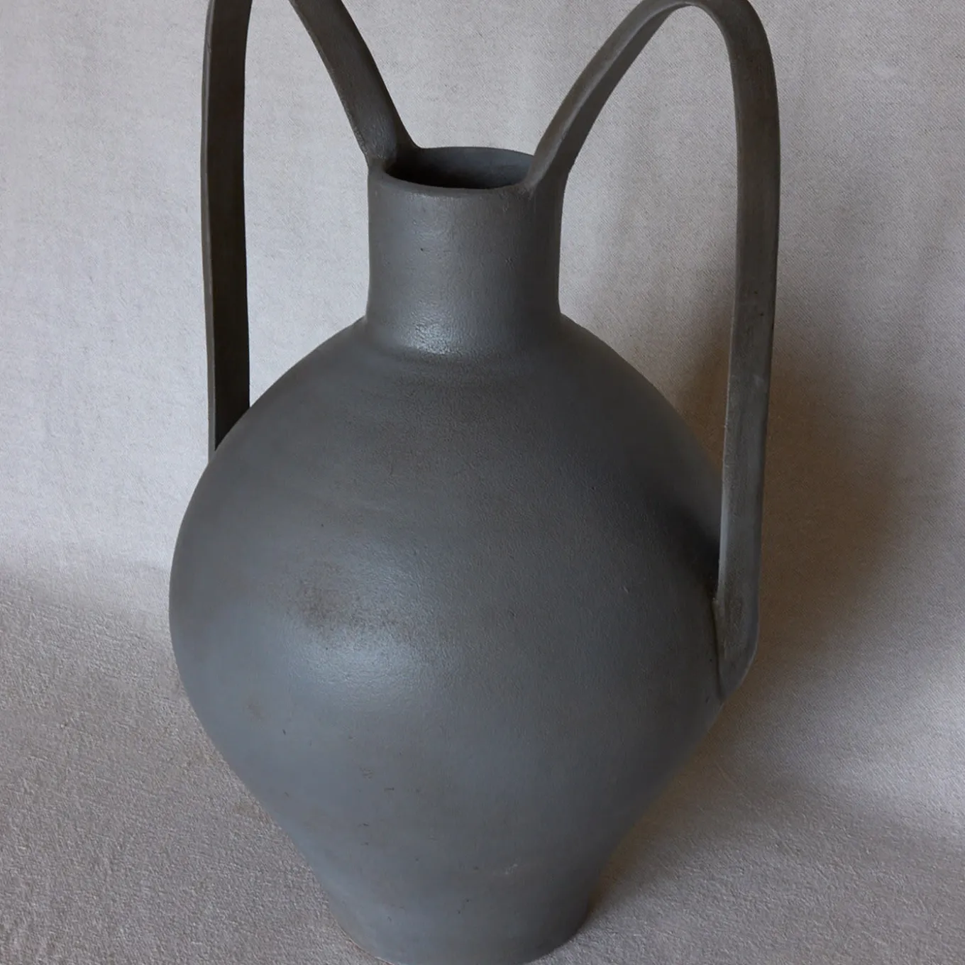 Reinterpreting a classic Greek and Roman amphora in a splendid contemporary key, this iconic design will effortlessly complement both modern and traditional settings, alike. Meticulously handcrafted of matte gray-lacquered ceramic, it will make an unprecedented accent piece for a garden or interior.