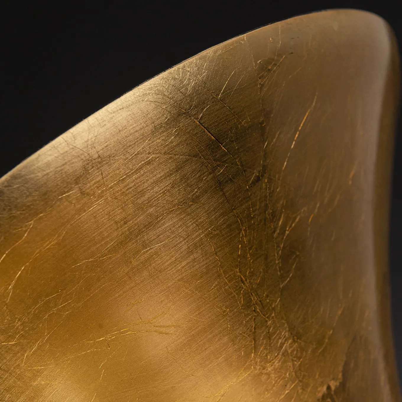 The elegant and luxe character of this vase makes it superb for refined banqueting such as weddings or holiday feasts. Fashioned of glass, its amphora-like silhouette gets entirely covered in prized gold leaf on the outside, its shimmering quality enchanting whatever the illumination level in the surroundings.