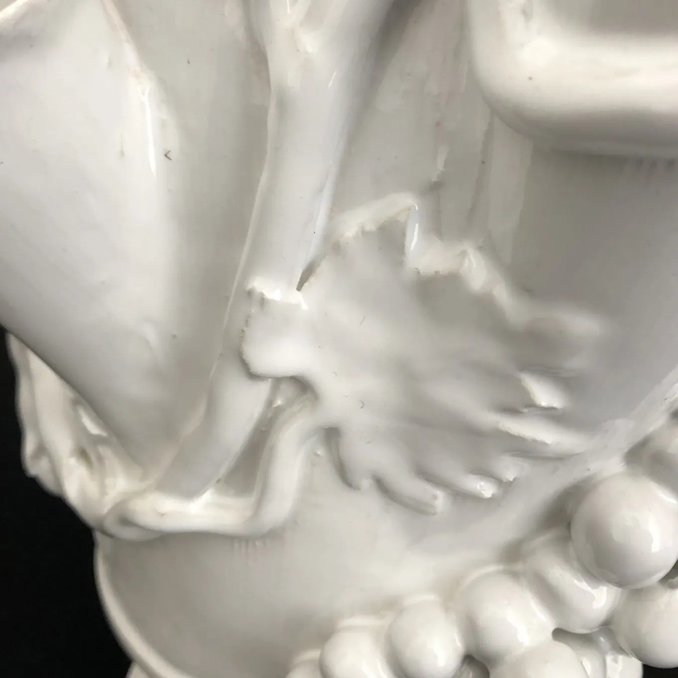 Inspired by a 19th century ancient vase found in the family country house, this 5 prong tulip vase has a central part made of white hand turned terracotta, internally and externally white enamelled berfore the second firing. Each piece is unique, and any irregularities in tendrils and grapes attest its authenticity.
