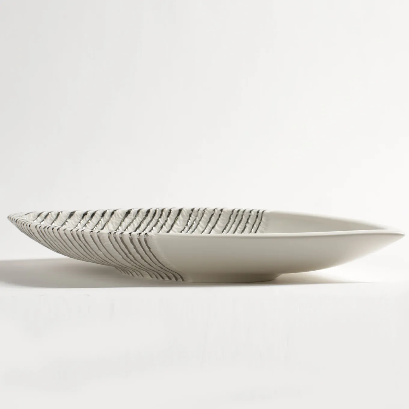 This exquisite centerpiece in porcelain, combines a sinuous design with the preciousness of hand-applied platinum accents that highlight its unique texture, making it a striking objet d’art.