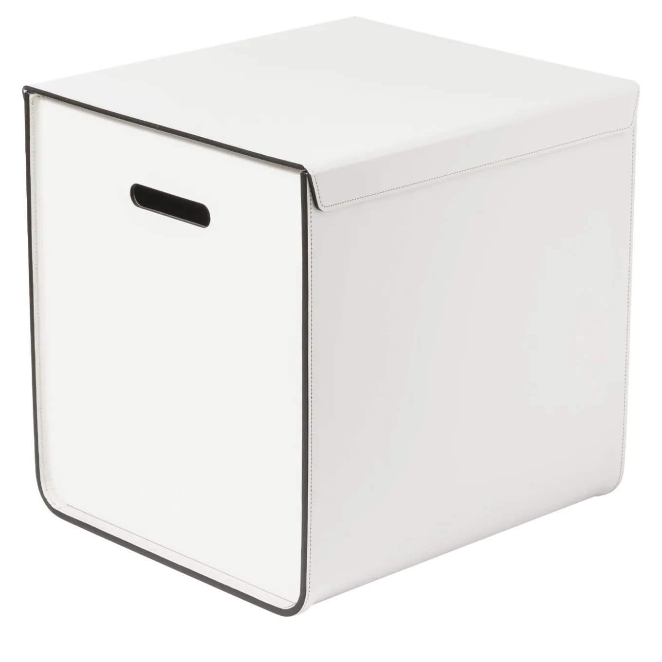 This medium-sized wardrobe box in in resistant, washable regenerated leather comes in three different sizes and in lots of different colors. Slightly rounded bottom edges, a small cut-out at the top for easy transportation, and a lip with a magnetic closure makes this organizer practical while also pretty to look at.