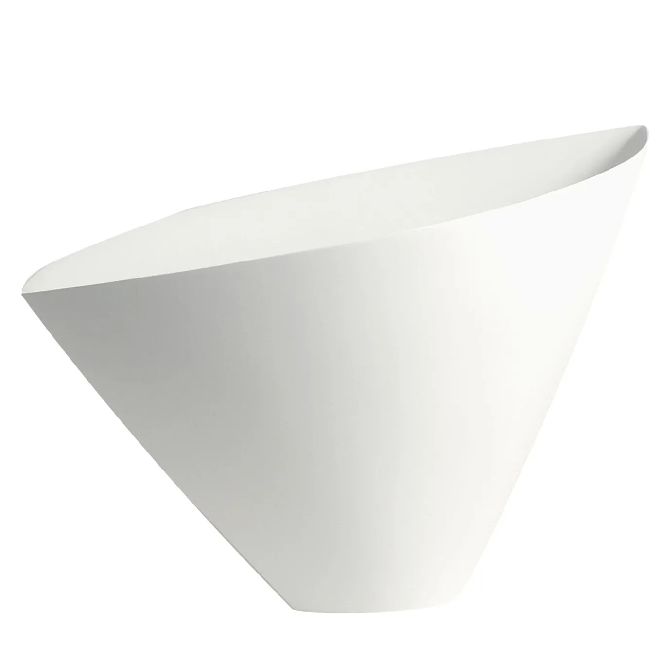 A distinctive medium-sized decorative centerpiece featuring a smooth matte finish and an asymmetrical design that combines modern simplicity with subtle elegance. Its wide, angled opening and tapered base create a striking silhouette ideal for minimalist interior settings or as a centerpiece accent. Suitable for displaying fruits arrangements or standing alone as an artful object.