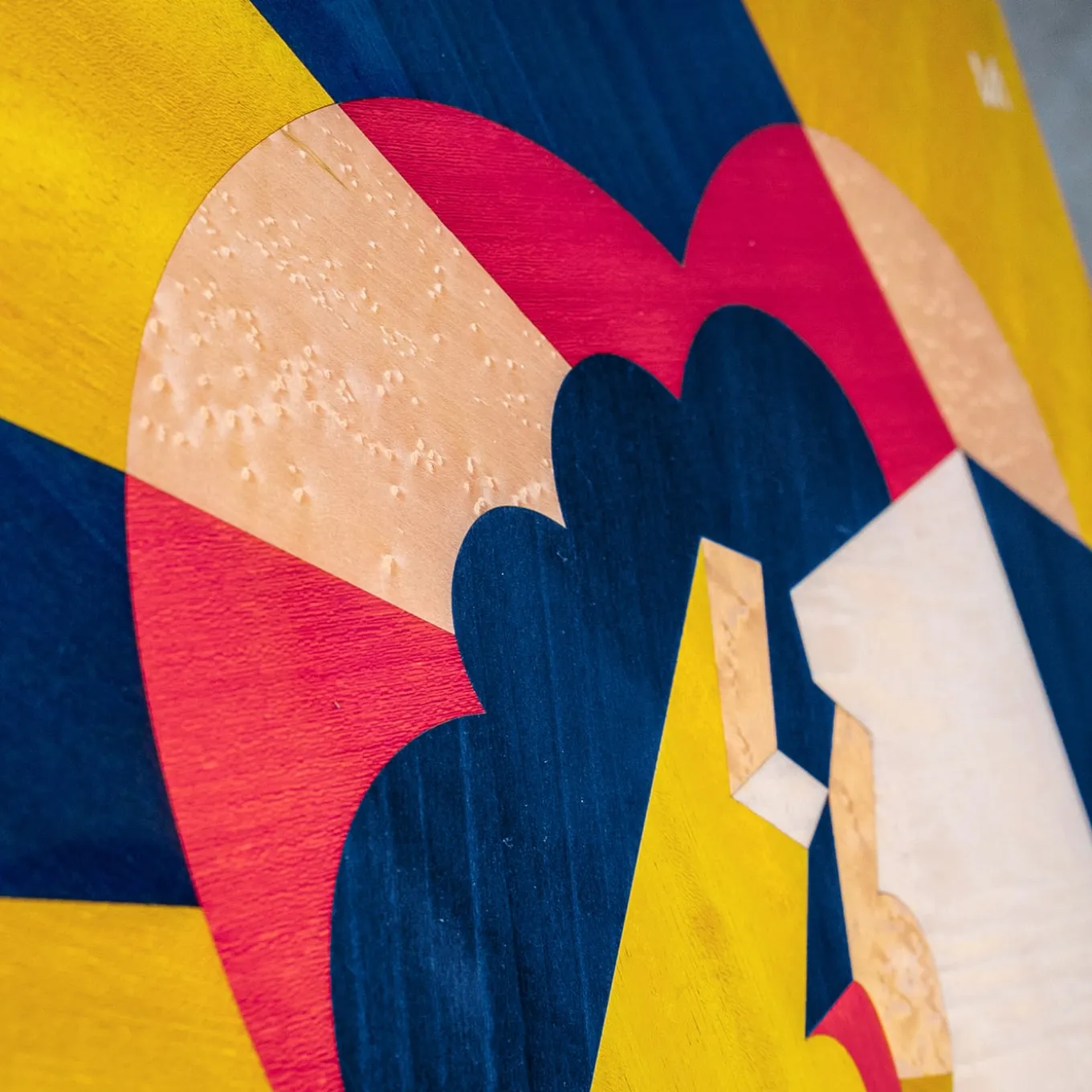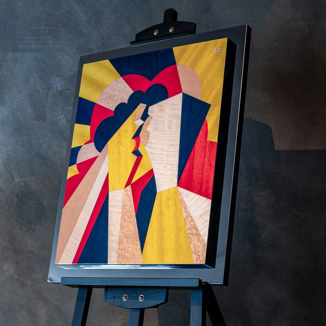 The first panel in a captivating journey through two individuals’ lives, as they become a couple and then parents, Bacio (Kiss) showcases a gorgeously crafted geometric wood inlay with vibrant hues of blue, yellow, fuchsia, and white. Created by StoryArt designer Marzia Boaglio for the San Valentino edition of her Prima Storia Collection, this distinctive objet d’art is also embellished by mirror-finished steel for an elegant contemporary touch suitable for a modern or minimal wall space.