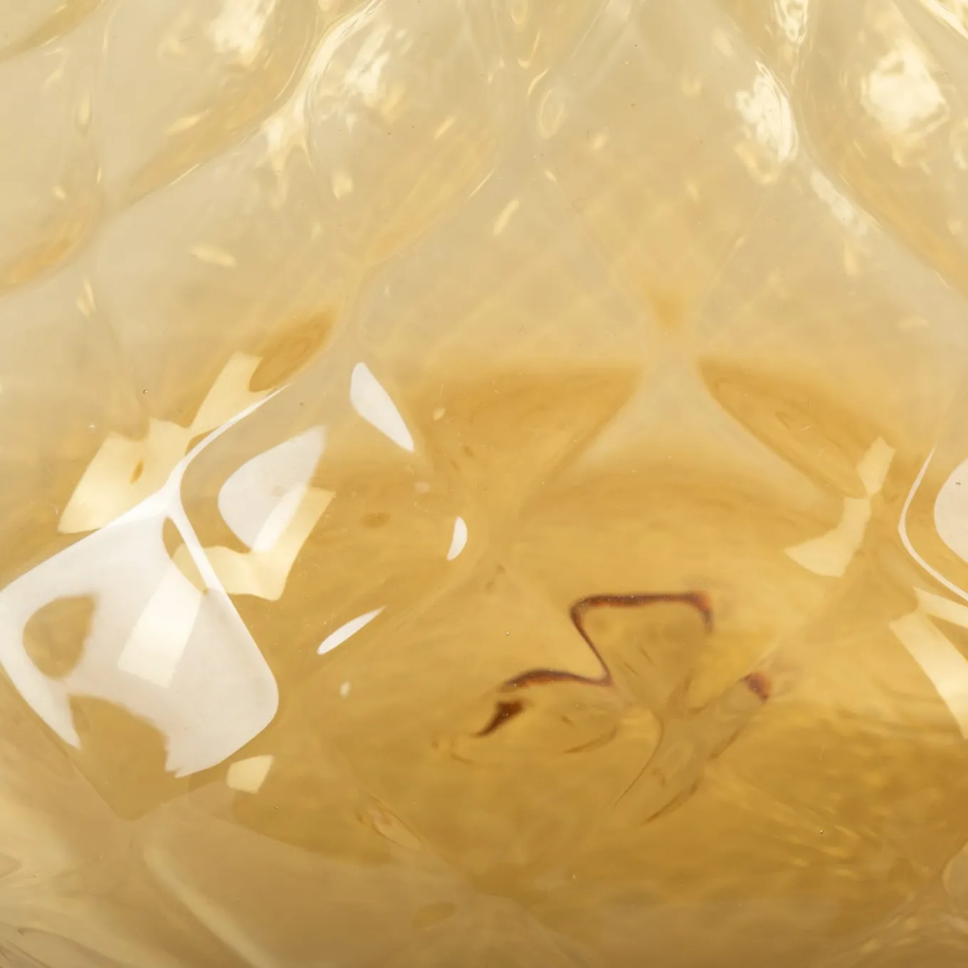 A tiny solution to display wildflowers or contain an inebriating home fragrance to be diffused through reeds, this elegant vase in amber-toned glass exemplifies the artistry of Muranese glassblowers. Its extensive and captivating diamond texture results from the balloton technique, lending its spherical body visual and textural character. The rim of the glass is in a vibrant shade of green, adding a delightful contrast that completes the piece.