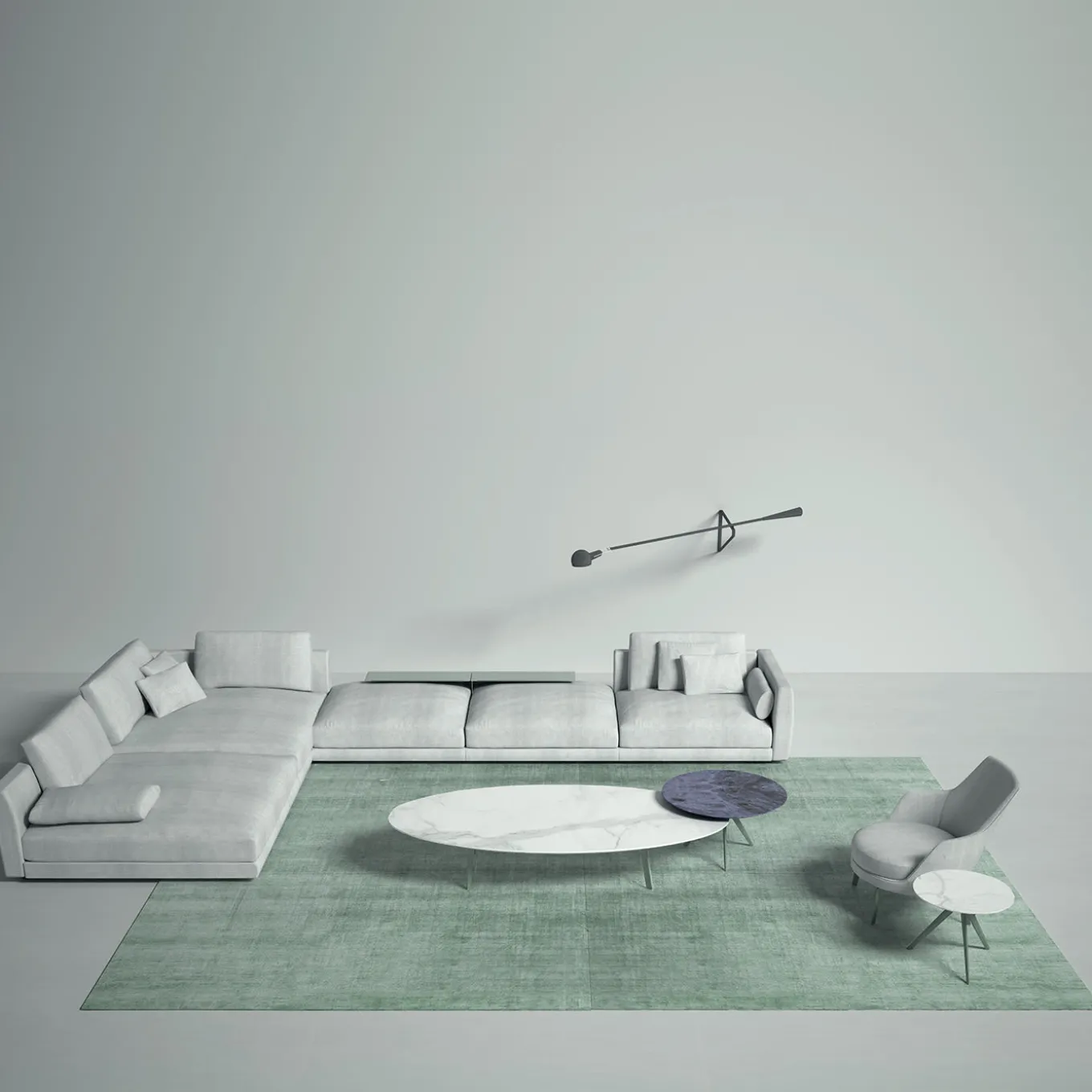 At once quiet and impressive, this rectangular rug in fine bamboo silk is sure to enchant both to the touch and sight with its soft texture and distinctive shades look. The generous size and fresh coloring suggest its ideal insertion in wide contemporary interiors. More color variants are available in the Artemest catalog. Please contact the Concierge for tailor-made size options.