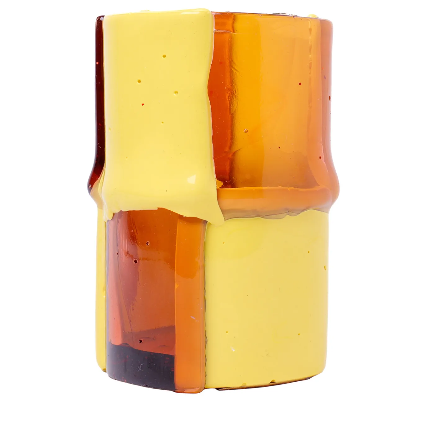 Large decorative vase designed by Enzo Mari, featuring a striking combination of pastel yellow and antique pink hues. Crafted from soft resin, this piece showcases a distinctive block pattern that enhances its modern appeal. Part of the Lezioni by Enzo Mari collection, it makes a bold statement in any interior setting with its vibrant colors and textured finish. Ideal for enhancing home décor with an artistic touch.