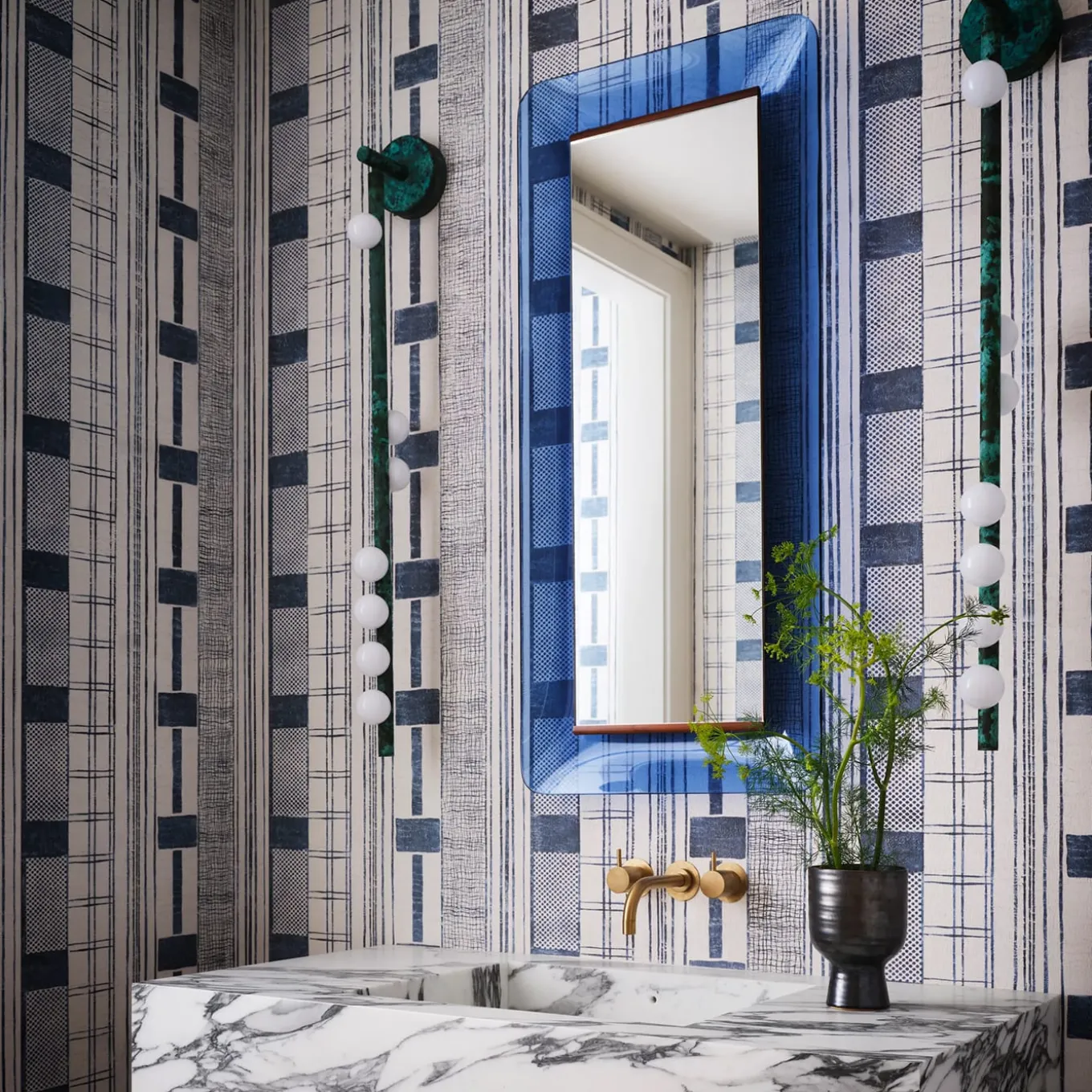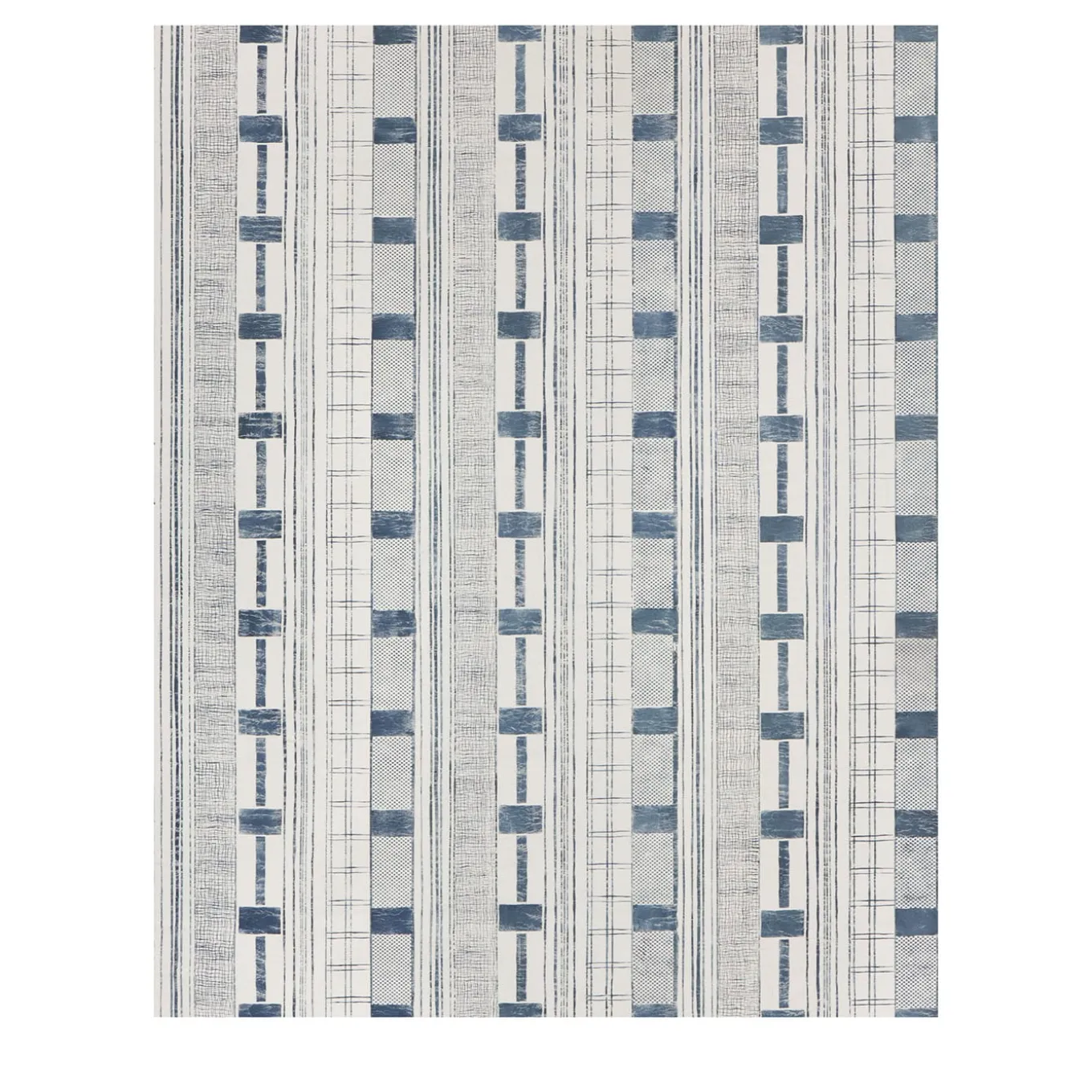 As the name suggests, the paper is inspired by the decorative technique of painting fabrics of archaic Africa. Batik which comes from the Indonesian words amba and tiktik, reinterprets this art thanks to the use of brushes and applied materials. The light background is on material, worked with veils. The pattern is obtained by overlapping the molds to form a cyan-blue geometric weave with a modern and sophisticated result. Each process was carried out by hand. Price per squared meter.