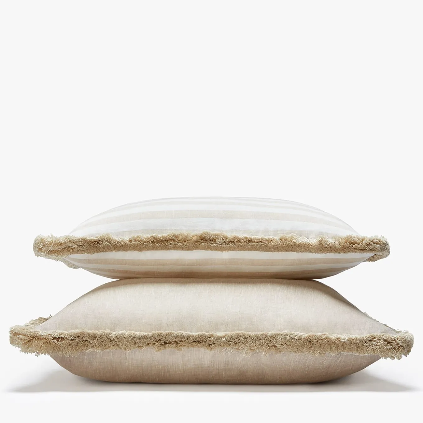 This cushion is the perfect accent piece for an easy style update, it makes a chic accent for any well-decorated home, adding charm to a bed, sofa, or armchair. Crafted of pure Italian linen, refined with cotton fringes, LO Decor Linen collection is available in both plain and striped colors both with its delicate hues and details with understated glamour. Warm colors, exquisite craftsmanship, and elegant materials are the hallmarks of these cushions. Removable cover, dry wash.