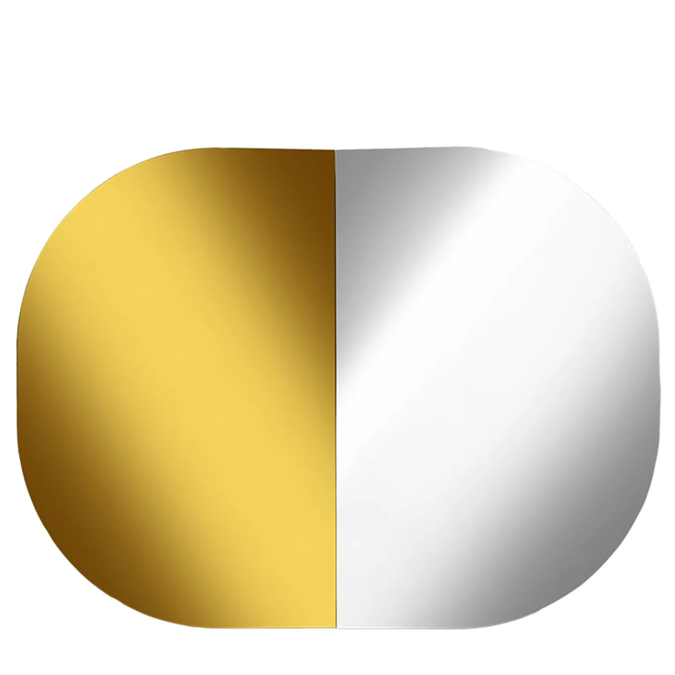Designed by Matteo Zorzenoni, Bent adds a glamorous flair to the traditional mirror design providing a sophisticated and functional statement piece in a modern and contemporary home. The intriguing construction is composed of two identical mirrors, one clear and one gold, bisected vertically in the center and slightly bent outwards. The resulting effect is a subtle sense of depth and unexpected viewpoints, but also an enhanced warm illumination in the surrounding space. Available also in a larger version measuring H 150 x W 90cm.