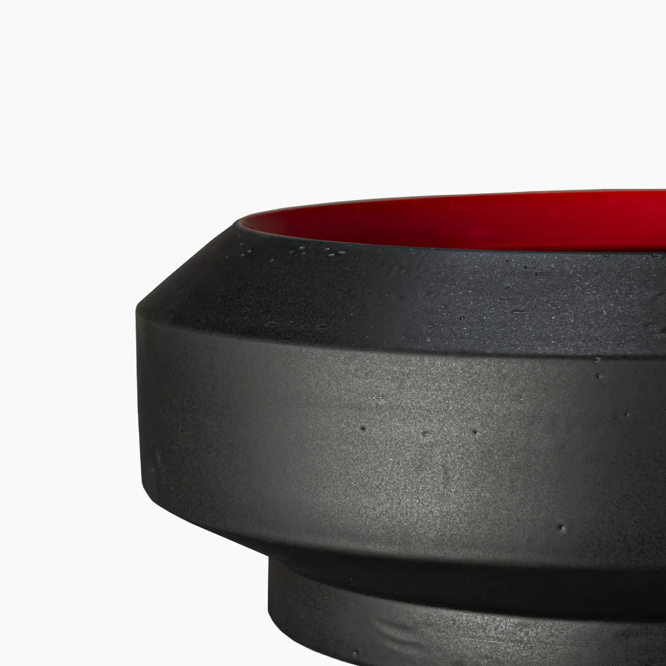 Part of the 2007 Tribe Collection designed by Arik Levy George, this ceramic centerpiece displays a sharp geometric shape finished with bold colors in a balanced visual aesthetic that will enliven a modern dining room table, entryway console, or private study. Crafted of white refractory clay turned on a lathe and finished in matte black enamel, the large bowl-shaped body is raised on a small base and features a wide rim showcasing the internal glossy, vibrant-red finish. A limited edition of 99 pieces, this exquisite centerpiece makes a well-received gift on any occasion.