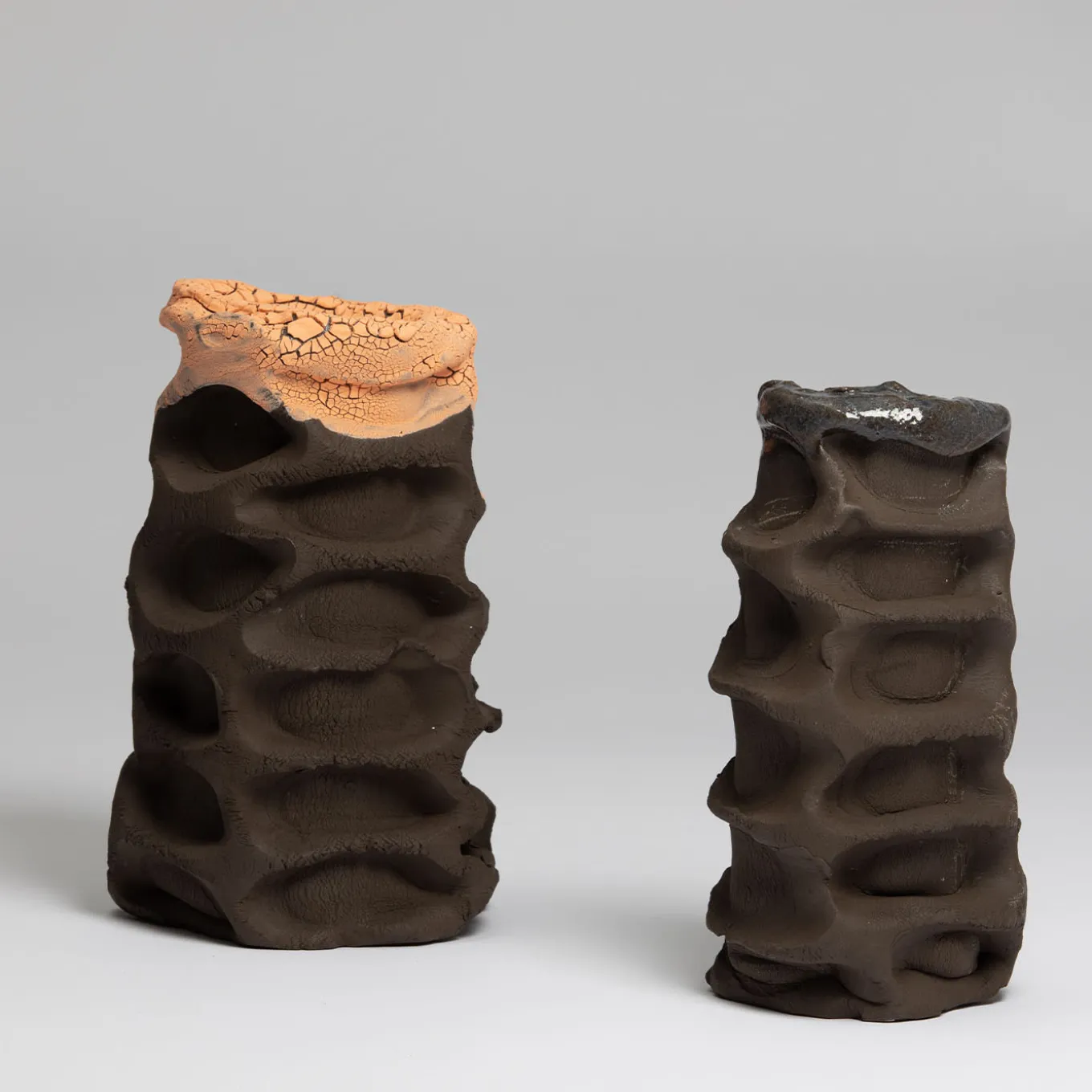 This decorative vase encapsulates a unique interplay between nature and artistry, drawing inspiration from rugged volcanic landscapes. Its design is a reflection of environments where life struggles to flourish, marked by the delicate partnership between resilient lichens and the stark element of rocks. Crafted from high-quality gres with chamotte, this vase possesses a rough texture complemented by an interior glazing that exhibits a striking crackle effect. This combination of materials not only enhances its visual appeal but also creates a juxtaposition between porous and glazed surfaces, showcasing the strength of the medium. Ideal for settings that merge art with design, it serves as a captivating focal point, perfect for adorned spaces seeking a touch of sophistication and unique character. One-of-a-kind piece.