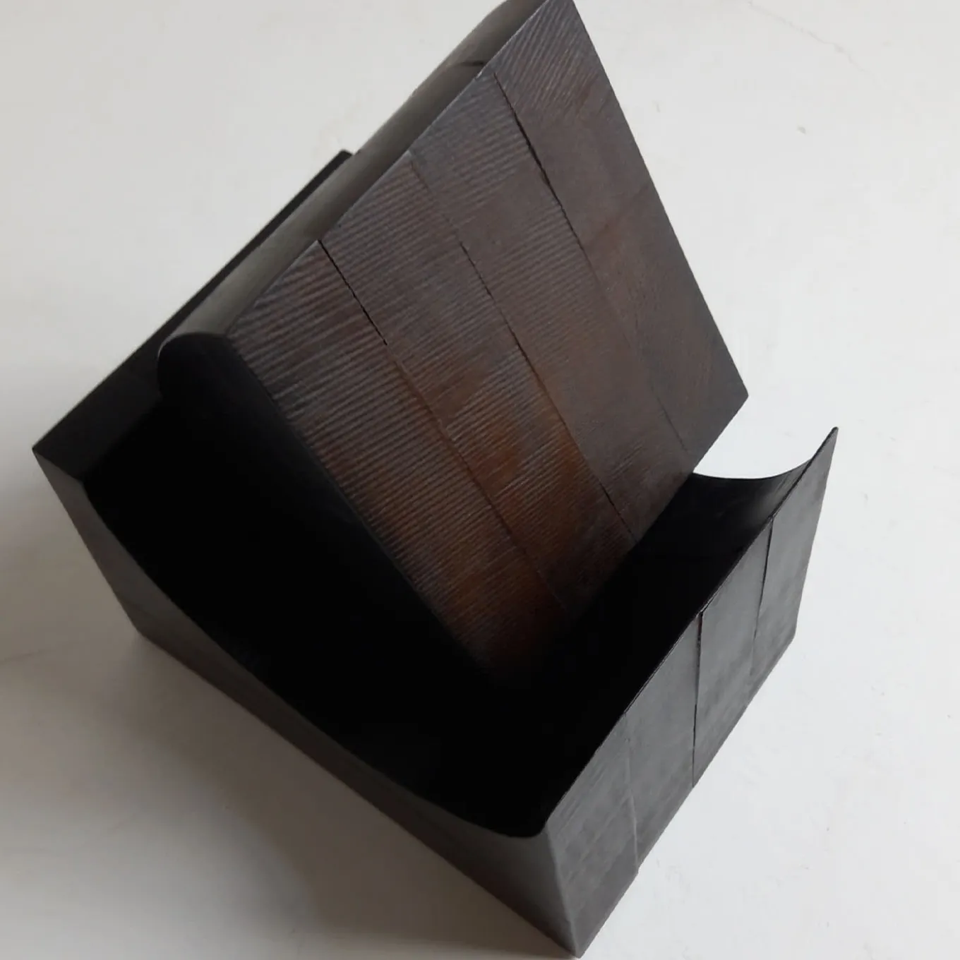 The Black Wood Magazine Rack by Pietro Meccani for Meccani Design is a striking handcrafted piece in matte black lacquered wood. It consists of two interlocking volumes—one concave, the other convex—that rotate and transform, creating unique configurations. Originally designed in 1994, this functional sculpture is part of a limited edition of 20 signed and numbered pieces, produced in 2024, reflecting Meccani’s mastery of form and craftsmanship.