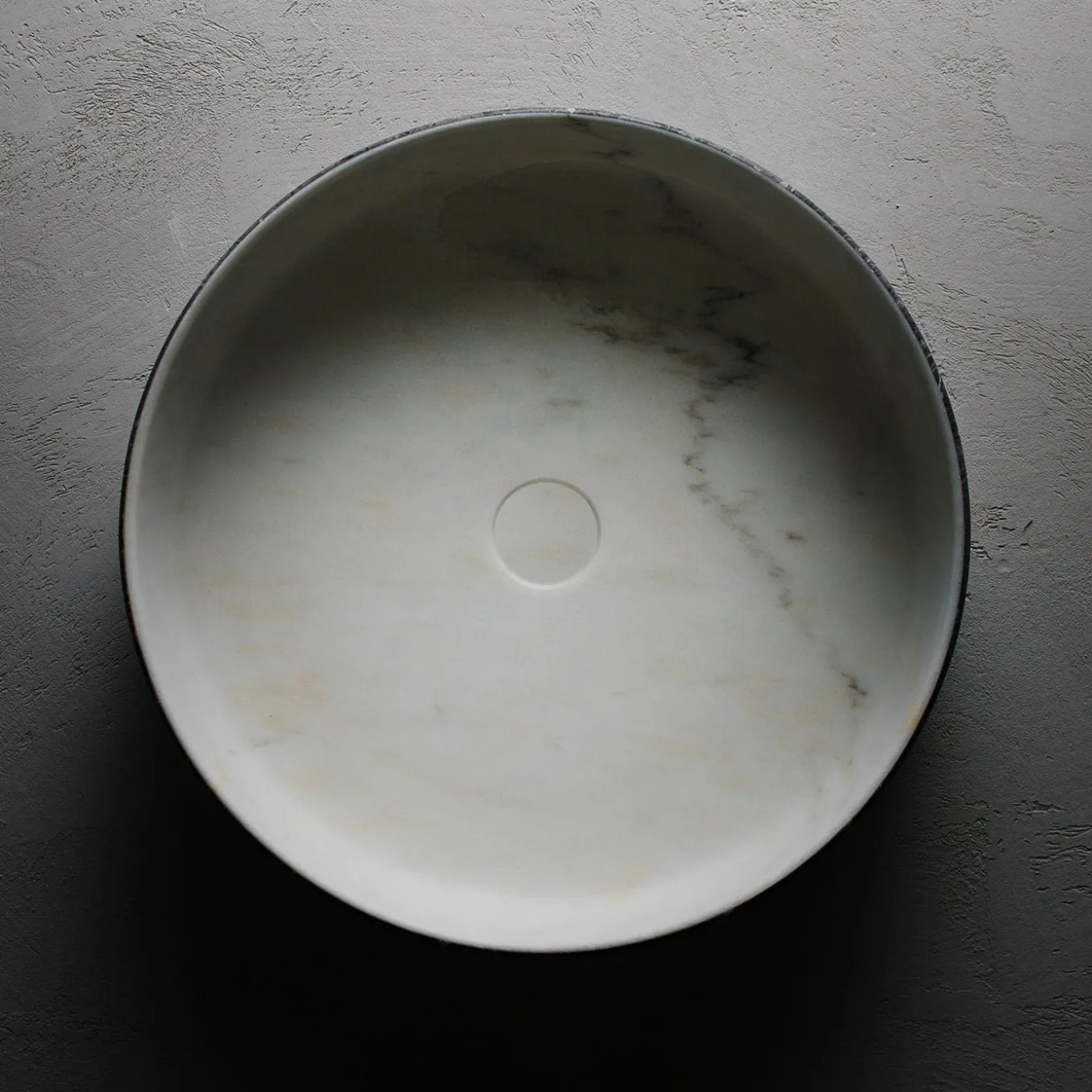 Designed by Christophe Pillet for Kreoo, this spectacular washbasin is a testament to the sophisticated, unique character of marble stone. Bespoke and masterfully finished, it boasts mesmerizing veinings merging in the combination of two contrasting marble stones, meeting on the upper border, finely worked by hand in a thin profile. Available in other versions on the Artemest catalog, please consult the Concierge for further information.