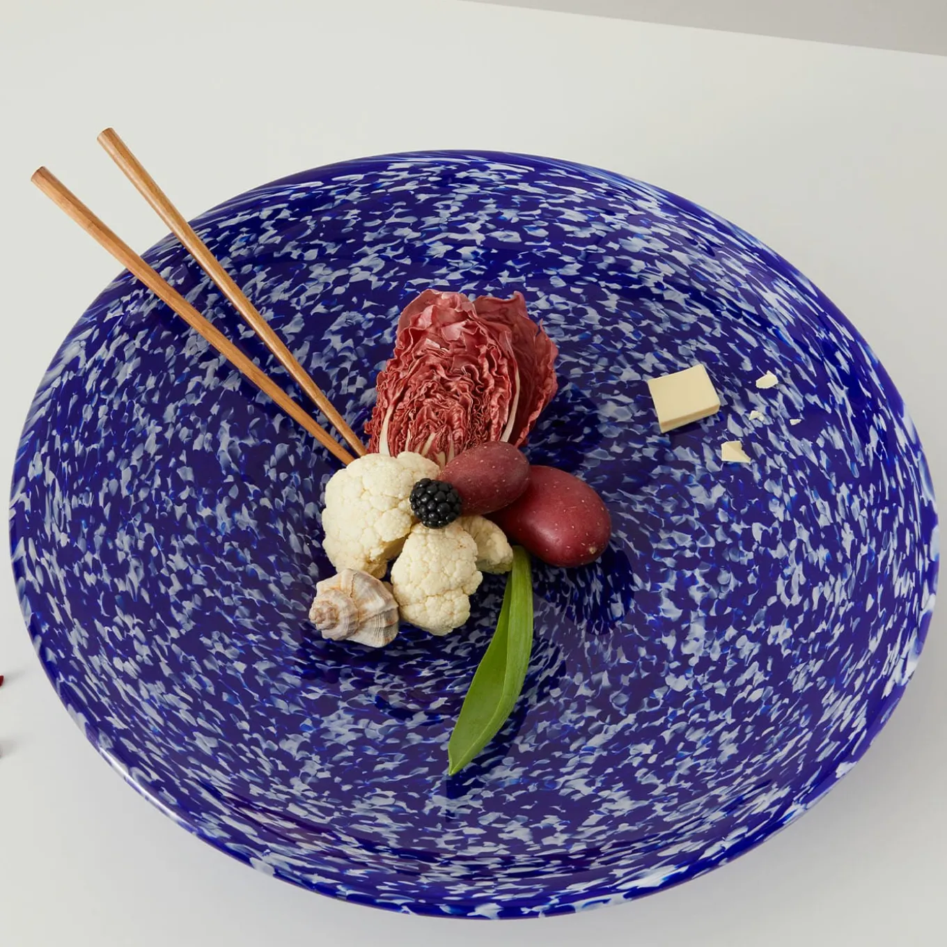 The Blue & Ivory Decorative centerpiece from the “Macchia Su Macchia” collection features a large, glossy speckled pattern that offers a unique blend of coastal elegance and Mediterranean charm. Its minimalistic round shape contrasts with the vibrant blue and ivory design, which evokes tranquility and sophistication. Each centerpiece is one-of-a-kind, showcasing a dynamic speckled surface that enhances contemporary interiors or beach-inspired settings. Every piece is unique, due to handcrafting slight changes may occur.