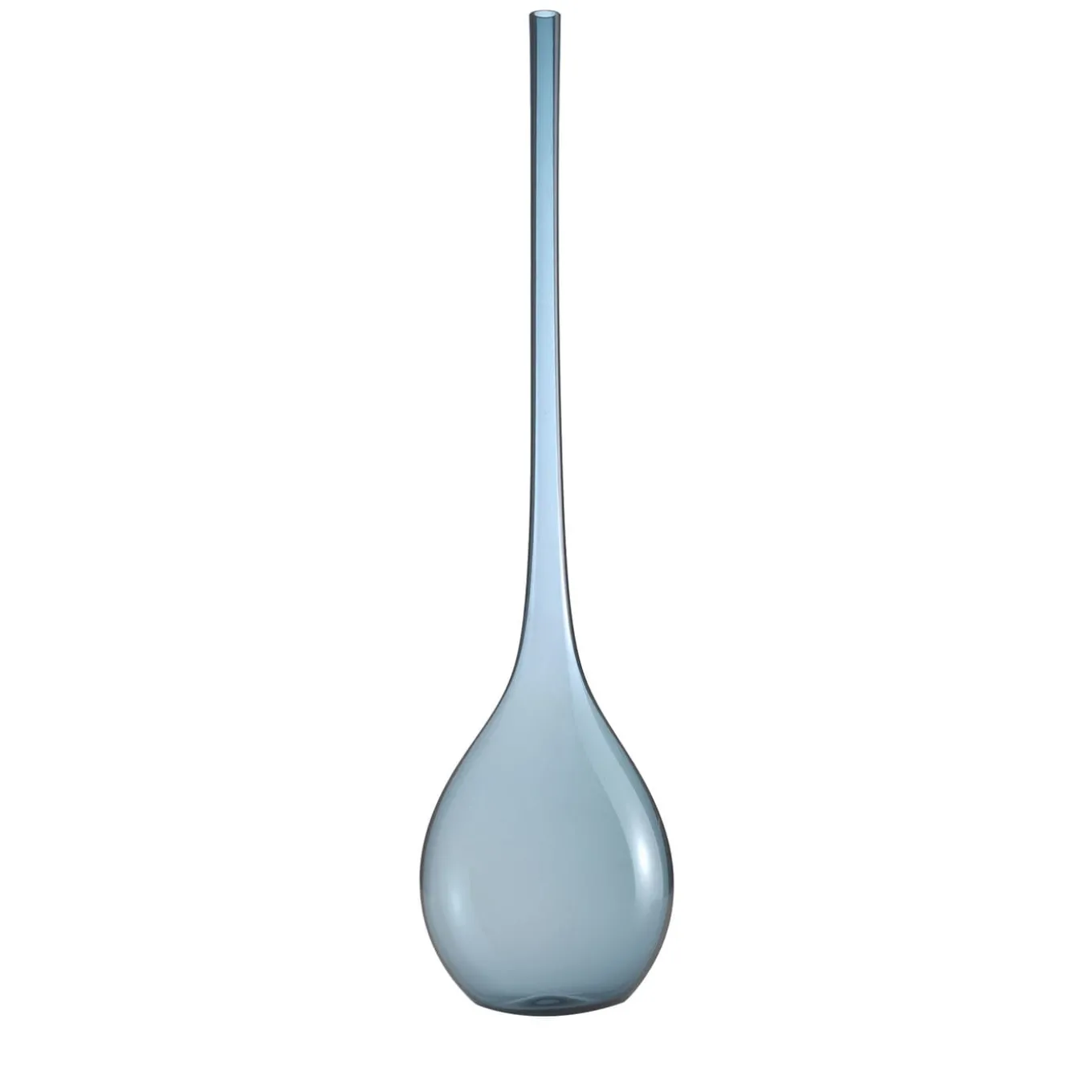A delicate and refined shade of Air Force blue characterizes this superb Murano glass vase. Masterfully mouth blown and finished by hand, it stands out for its dramatically elongated neck that states the piece’s exclusively decorative nature. Potential slight differences in terms of size and shape are to be expected and treasured as proof of its artisan quality.