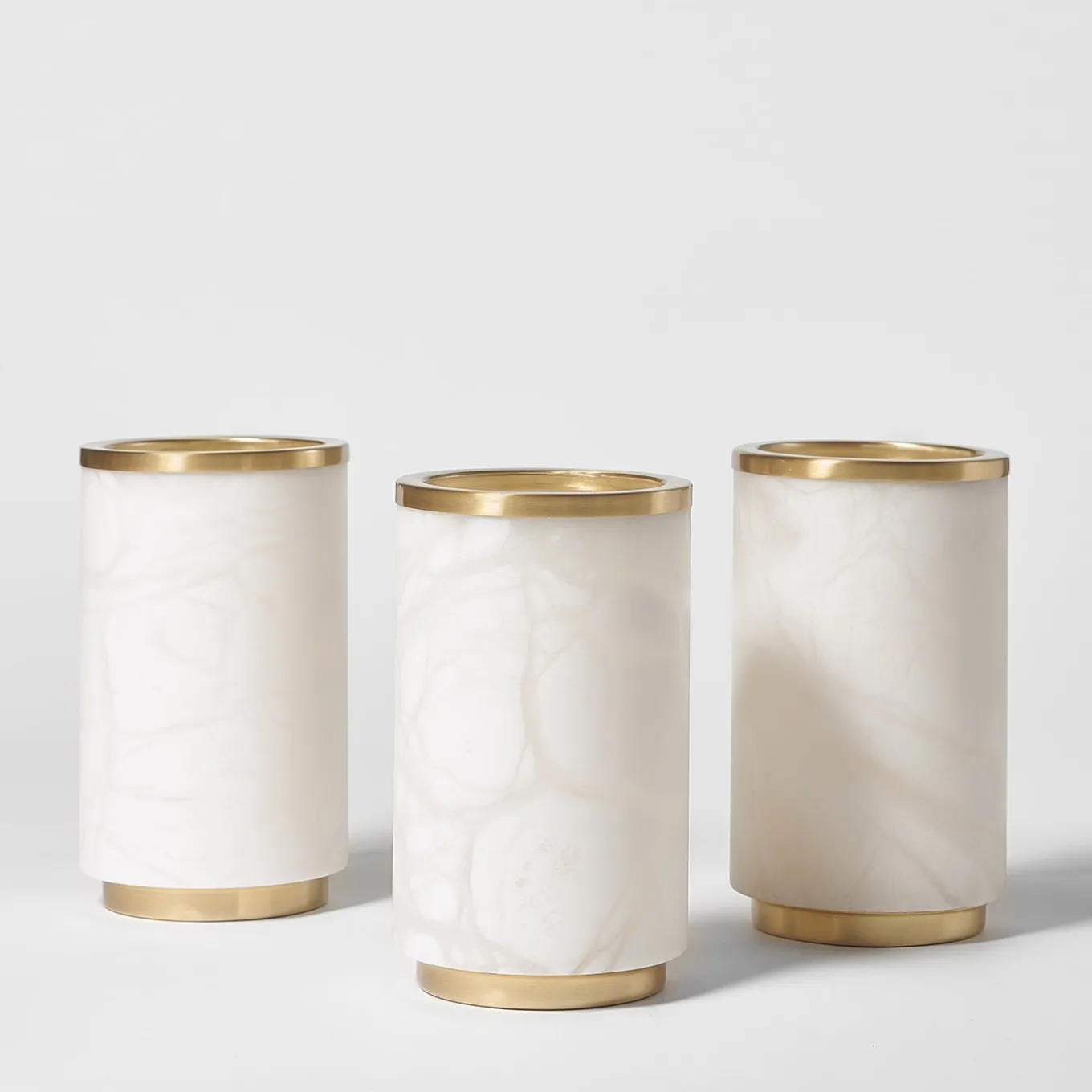 The Borealis vase with satin brass rim is a striking piece that embodies timeless elegance and modern sophistication. Crafted from high-quality white alabaster, this vase features unique natural veining that lends an organic touch to its refined design. The cylindrical shape enhances its minimalist aesthetic, making it a versatile addition to various interior styles. Accented by a smooth satin brass rim, this vase not only adds a hint of warmth but also elevates the overall luxury of the piece. Ideal for showcasing floral arrangements or standing alone as a decorative statement, the Borealis vase is designed to enhance the beauty of any space while reflecting a commitment to quality and craftsmanship.