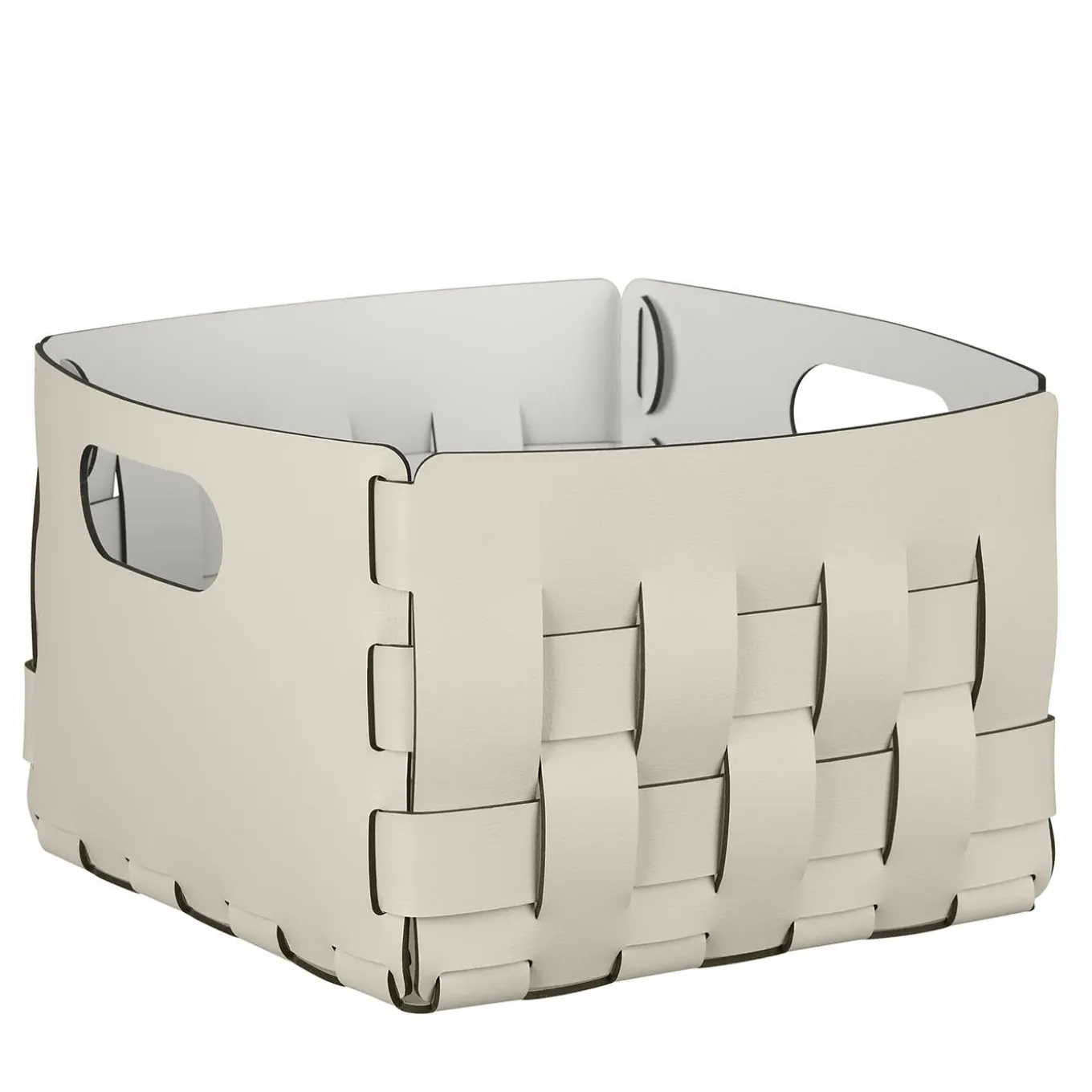 Eye-catching with its chunky wave wicker pattern of rectangles and squares, this basket by Ekaterina Borovkova is a testament to creative craftsmanship. Its Panna Cotta exterior and white interior create a striking color contrast, enhancing its unique appeal. Perfect for organizing linen, slippers, blankets, toys, or sports equipment, this piece seamlessly integrates into modern interiors.