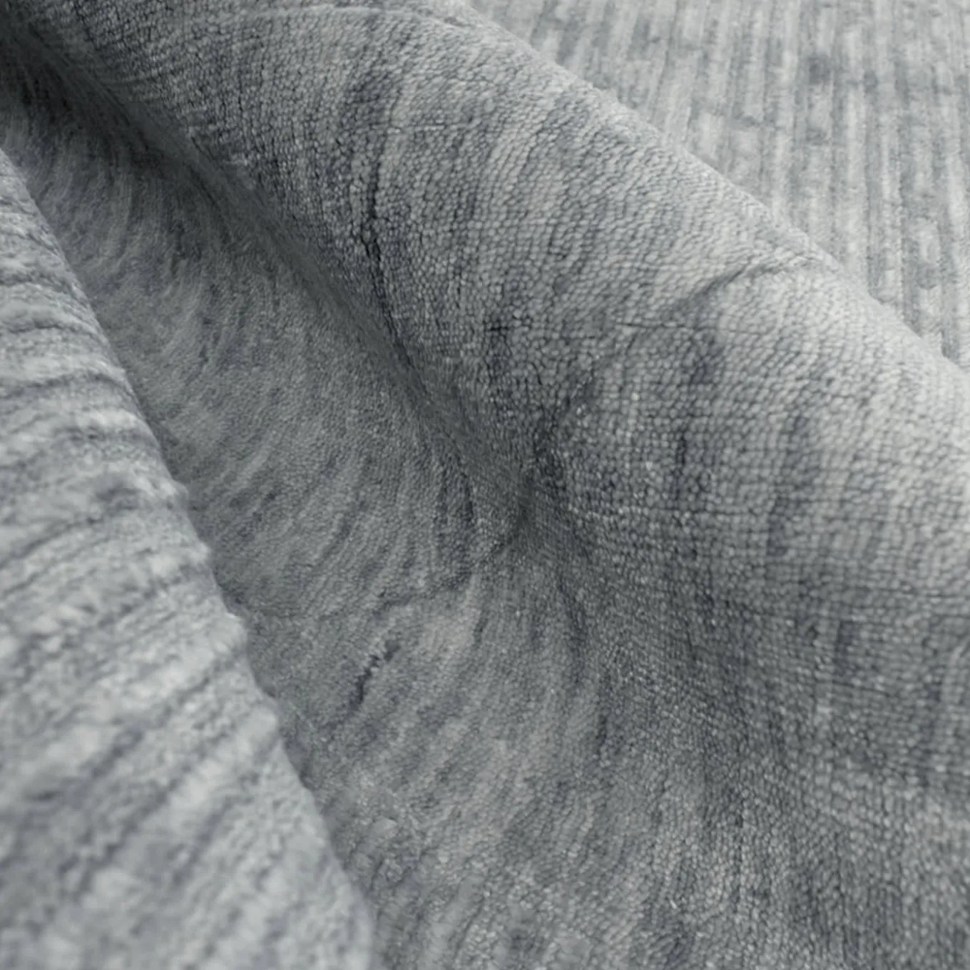 Part of the Bamboo Design Collection, this rectangular silvery rug made blending bamboo and cotton was designed having in mind endless wheat fields. It is obtained as a result of a deft manual weaving on a loom followed by an etching step that creates its distinctive geometric design, a visual effect emphasized by the tactile pleasure of fibers in two different heights. Please ask the Concierge for tailor-made options.