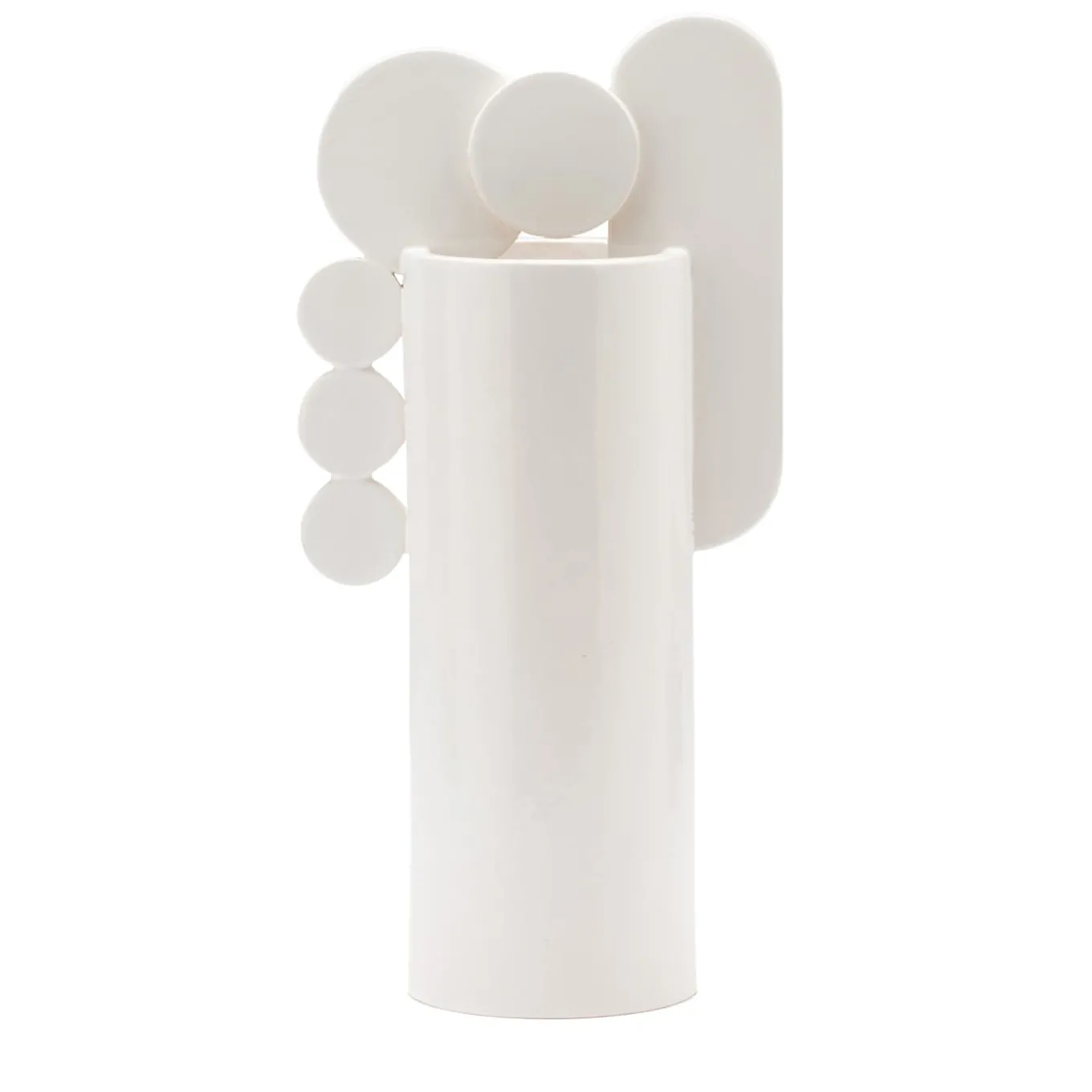 A geometric composition of intriguing asymmetrical design lends this ceramic vase its distinctive sculptural flair. The full glossy-white look distills a sense of ethereal elegance while attesting to extreme versatility in terms of chromatic combinations. Luminous and reassuring, it is also available in a turquoise version. Please contact the Concierge.