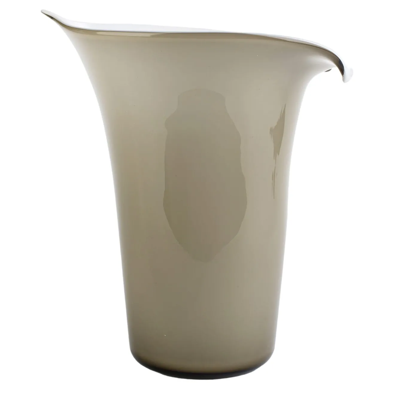 Elegant reproduction of a delicate calla’s bud, this sophisticated vase mouth-blown from Murano glass is a showcase of deft craftsmanship. Its fluid edges softly reveal the dichotomy of nuances between the interior and the exterior, achieved using the “incamiciato” technique, where two glass sheets in different colors – here white and gray – get partially molten to turn in a single, two-tone one.