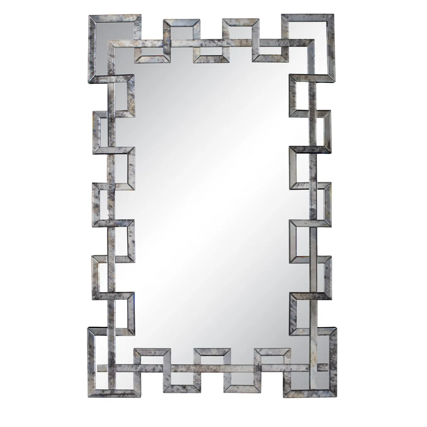 Venice shows its modern side in the Calle Intarsio Wall Mirror. Available in a variety of sizes and color combinations, the wall mirror features a painted wood frame with tiny pieces of distressed glass, expertly placed together in a geometric design.