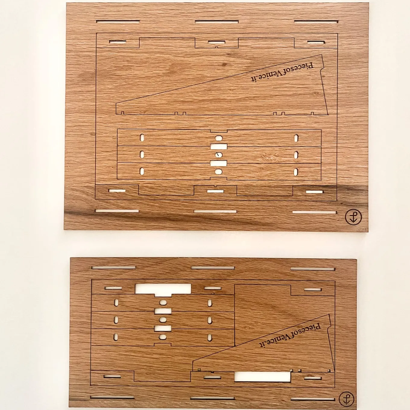 Handcrafted using durmast recycled from wooden pile moorings from the Venice Lagoon and larch from jetties, respectively, this fine set of two photo frames truly allows one to hold a “piece of Venice” in their hands. Named after the address of Bianconero, a magical shop selling iconic, black-and-white photos from the historical archive, set your favorite pictures in these two precious frames for a distinctive, timeless display.
