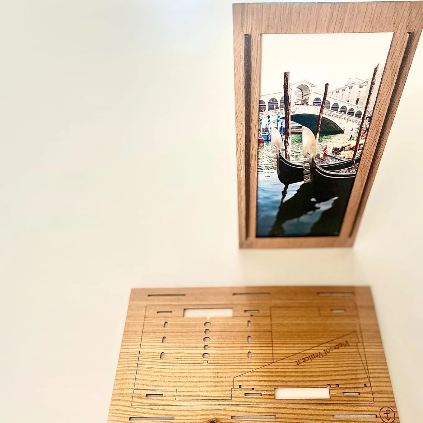 A true joinery gem capturing the authentic soul of Venice, this set of two photo frames is handcrafted from larch and durmast recycled from jetties and pile moorings from the Venice Lagoon, respectively. Its name is like a secret code to discover a magical place, Bianconero, an exquisite shop where one can choose from an ample archive of historical photos that will surely be treasured in these precious frames.