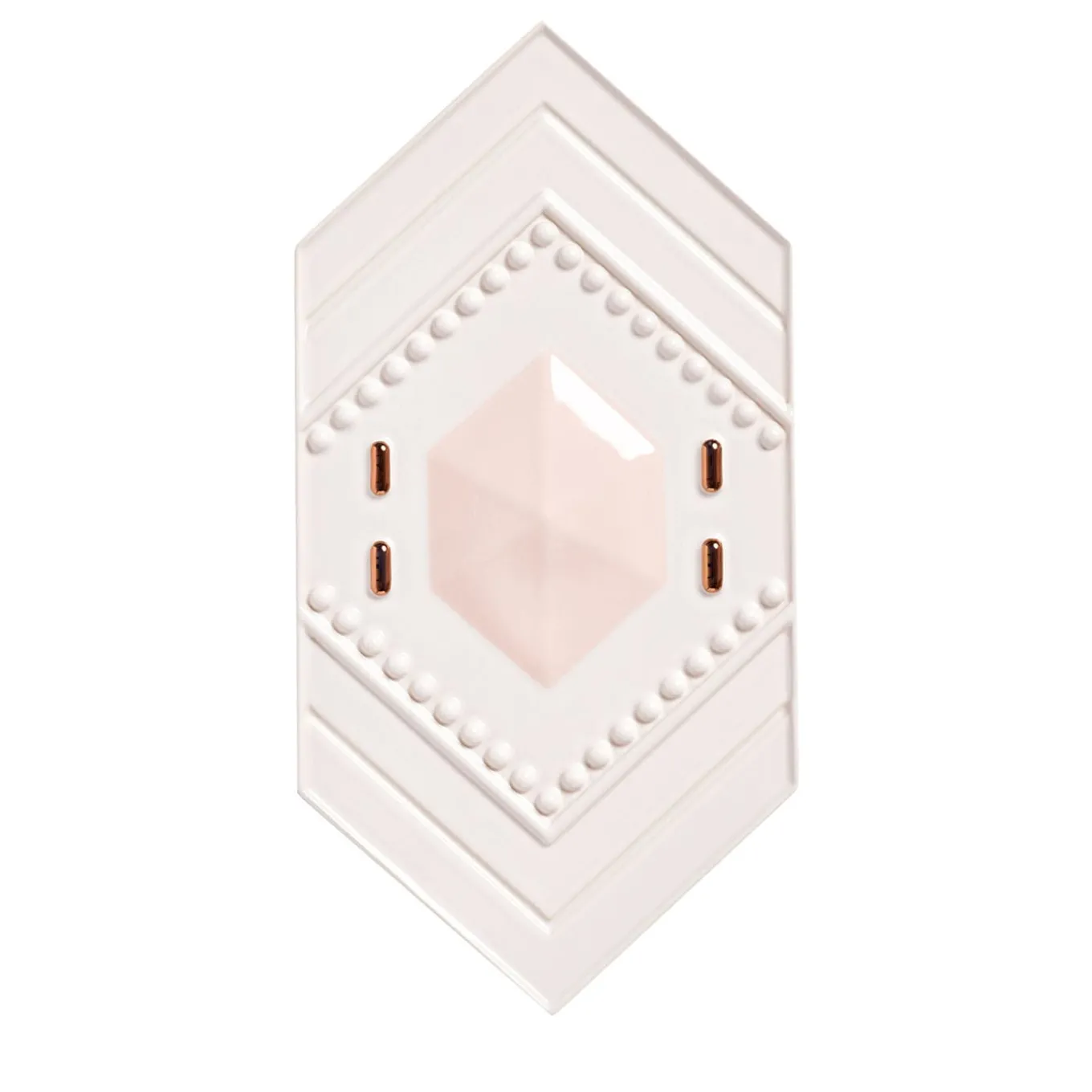 The Celestia Tile in glossy tea pink, peach gem, and glossy copper details offers an exquisite enhancement to any space, boasting a unique hexagonal shape that draws inspiration from celestial themes. With dimensions of 1 square meter, this tile is designed to captivate and transform interiors through its intricate patterns and harmonious lines. Each tile features a central pyramid, providing a striking focal point, while the surrounding decorative spheres evoke a sense of movement reminiscent of stars and planets. This combination creates a dynamic visual experience, blending elegance and artistry seamlessly. The glossy finish amplifies its appeal, ensuring a stunning reflective quality that enhances the overall aesthetic of the environment. The price is listed per square meter. Please contact the Concierge for more information.