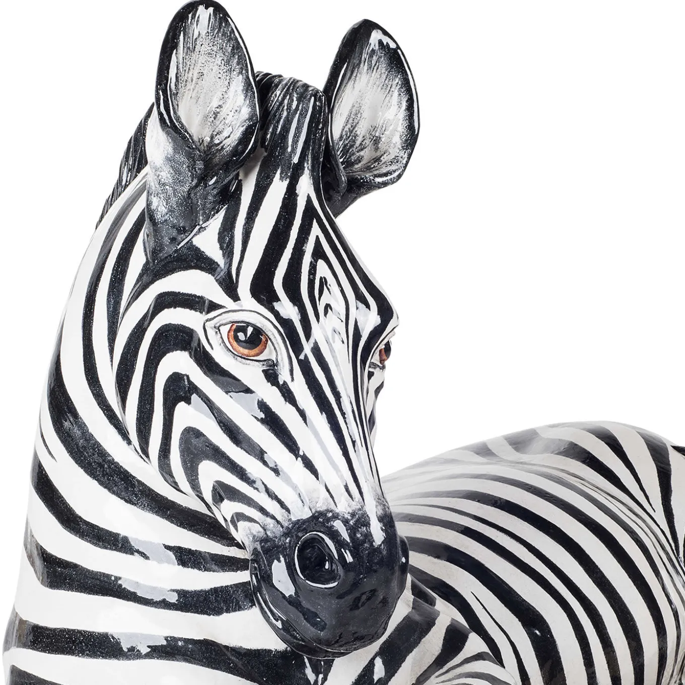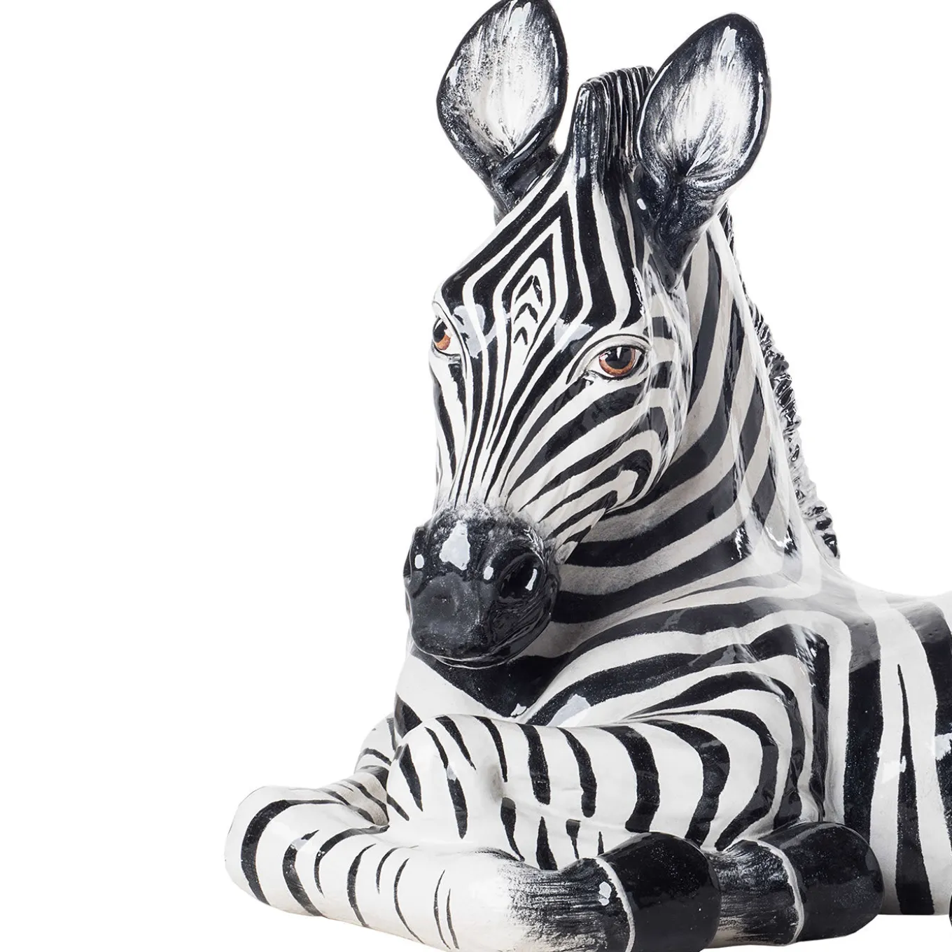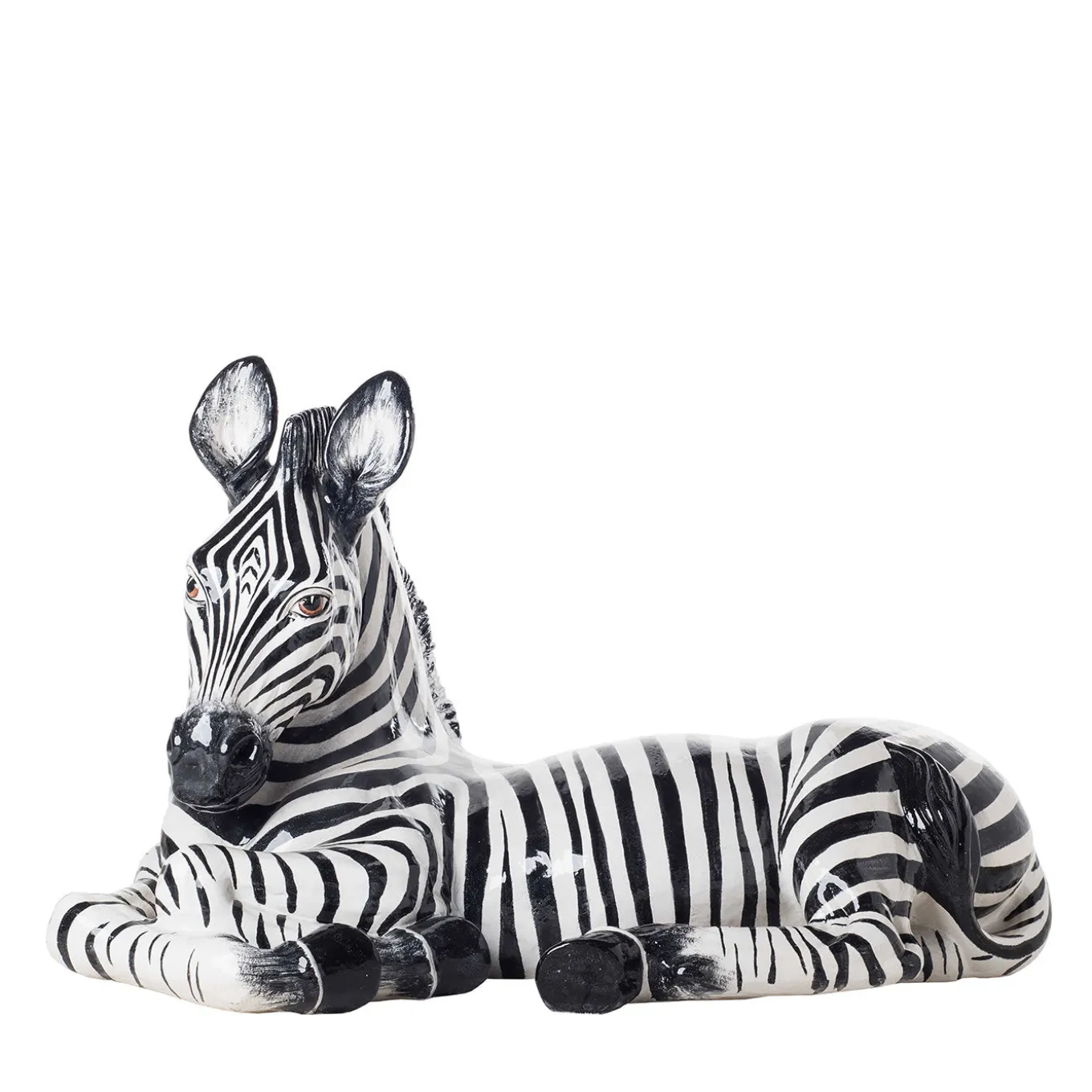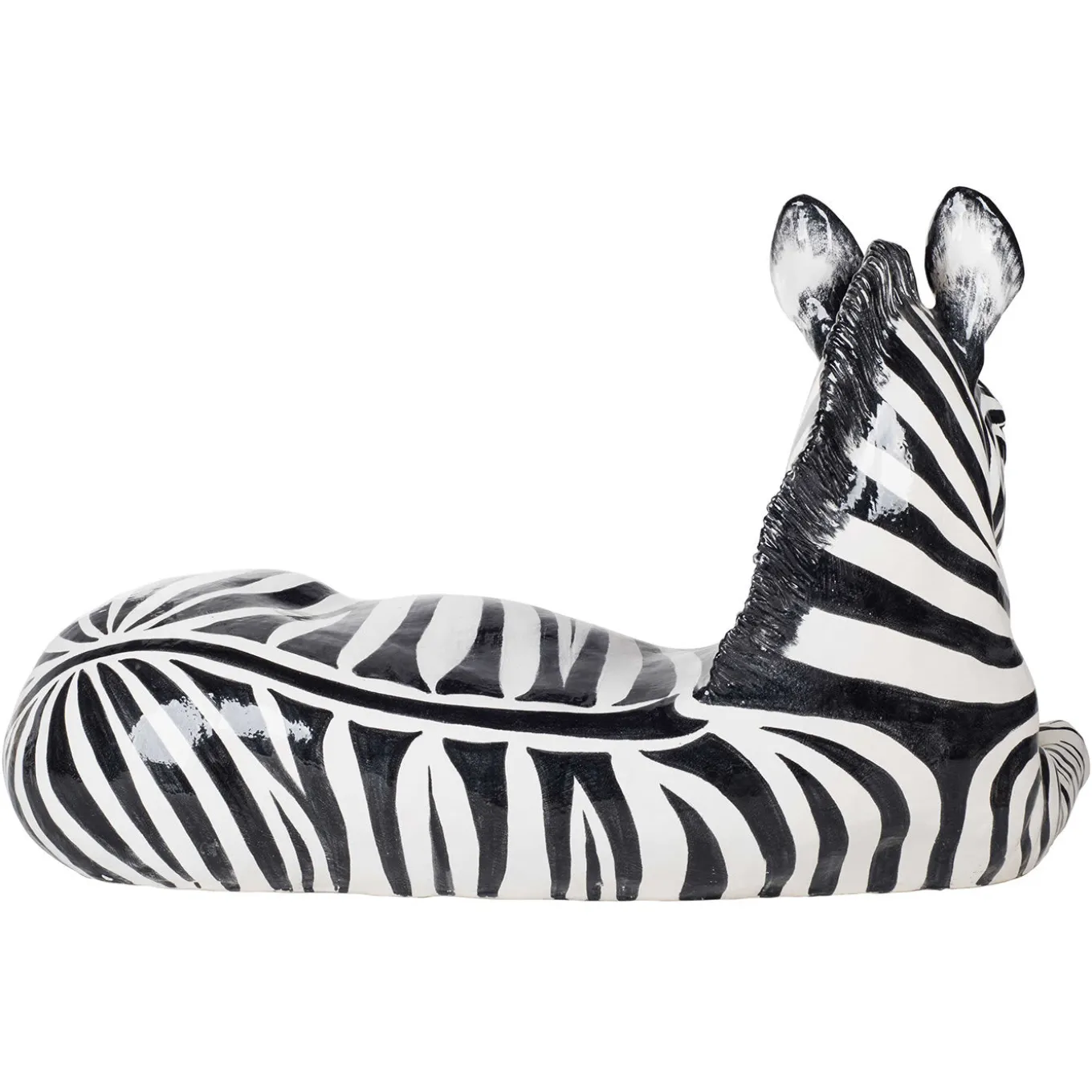 An African safari in the comfort of one’s home comes that much closer with this ceramic zebra statuette. The animal – at rest with its front legs crossed in a playful manner – is completely hand-decorated in black and white enamel and is an ideal piece for any contemporary, modern or Art Deco setting.