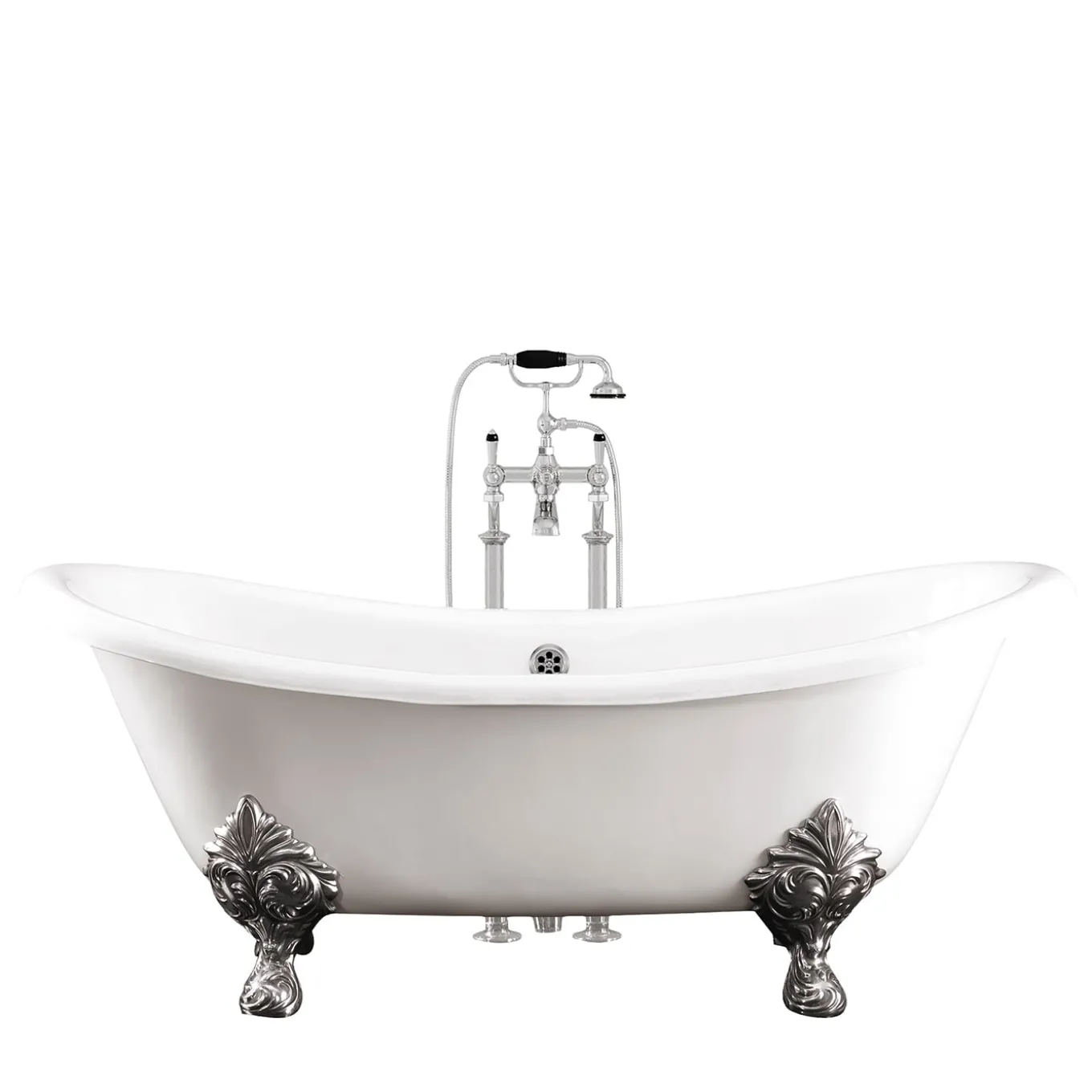 Refined French fin de siècle inspiration for a ritual bath aiming at great comfort. The double raised backrest that guarantees a particularly comfortable seat and the magic cast iron ensuring that the water always has a pleasant temperature make the bath a moment of gratifying body care. Please, contact the Concierge service for further information. Faucets are not included.