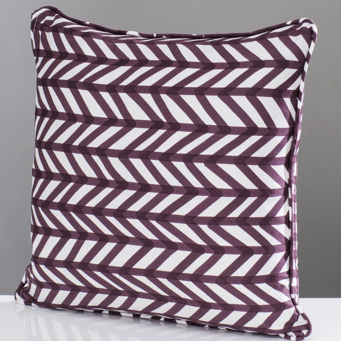 This elegant cushion has a down insert with a cover in 100% cotton decorated using the pigment printing technique with a striking herringbone pattern in maroon.