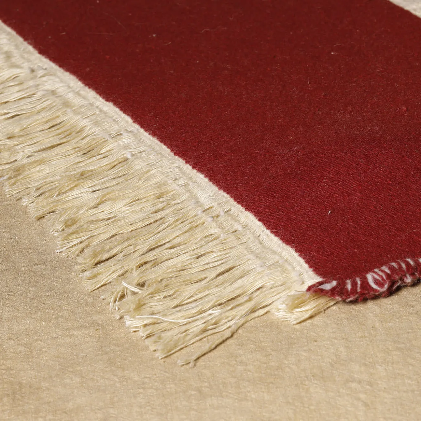 This sophisticated blanket features a soft and durable jacquard weft combining wool and linen. A quiet geometric design in a rich red tone neatly contrasts with the solid-beige backdrop, which is enlivened by coordinated fringes along the borders. Elegant and precious, it is the ideal solution for complementing warm, neutral-toned palettes.