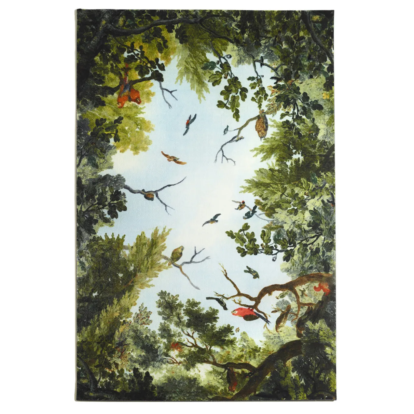 As a reinterpretation of the frescoes of the seventeenth century, this rug showcases beautiful imagery directly taken from the flora and fauna around us. As you step on to this rug you’ll be reminded of where the world is coming from. The intricate rugs come in two sizes, are made from synthetic fiber, printed in four-color, with satin webbing edge and felted bottom.