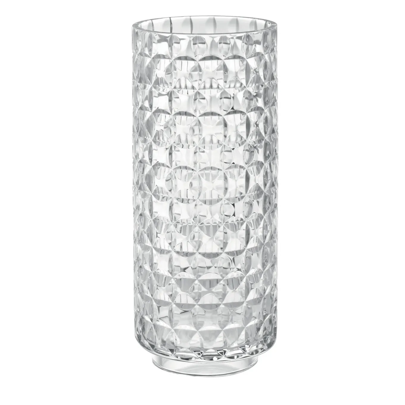 This hand-cut crystal vase is characterized by a three-dimensional textured circle motif, adding a unique, glamorous touch to an otherwise classic design. Combining sophisticated Italian styling with expert craftsmanship, the Circle Pattern Vase injects a subtle contemporary feel into any living space. A refined addition to a table, shelf or mantlepiece.