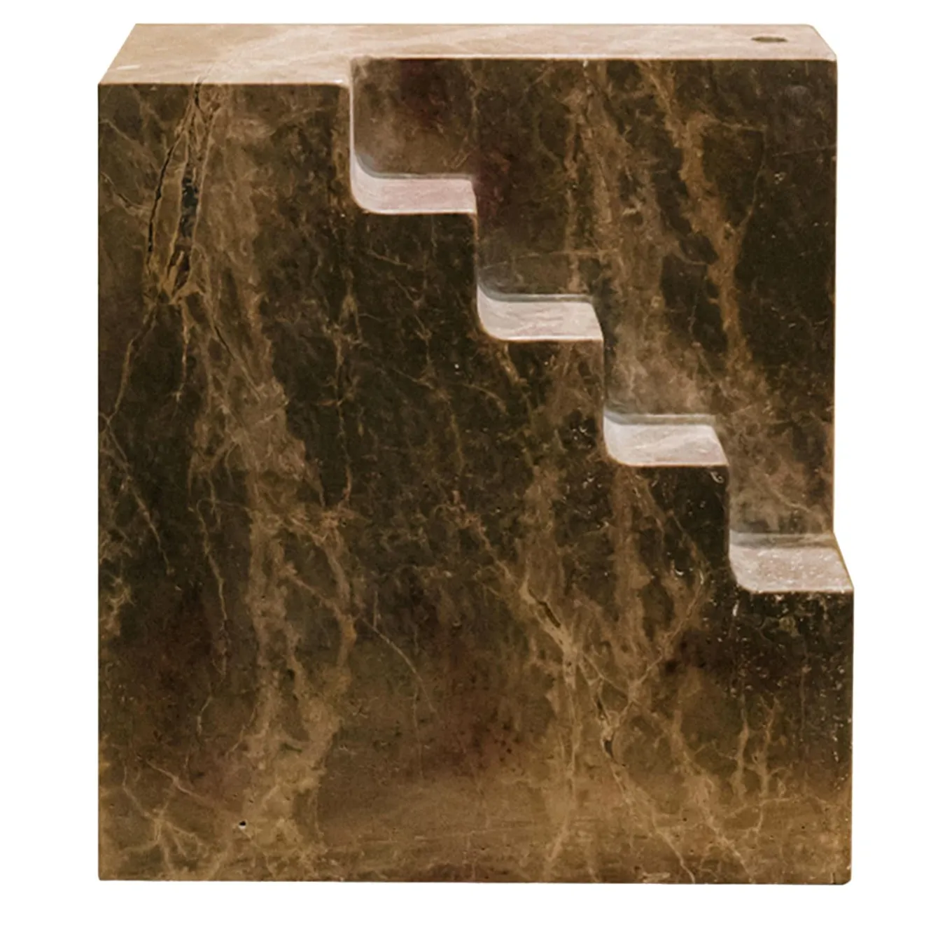 Fascinating cityscapes inspired the rigorous yet delicate design of this sculpture from the City Sculptures Collection. Entirely crafted of prized Dark Emperador marble and distinguished by a stepped detailing, it flaunts intricate hazelnut veining that recalls the piece’s uniqueness at every glance. A Travertine variant is also available.