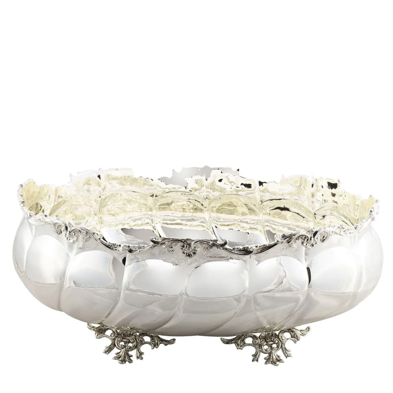 Refinement and opulence impeccably coexist in this centerpiece bowl, a sublime piece boasting extensive silver plating. The shaped rim and feet unmistakably reveal its Baroque inspiration, a style that lends the bowl a level of sophistication that makes it the perfect complement to exclusive and timeless silverware collections.