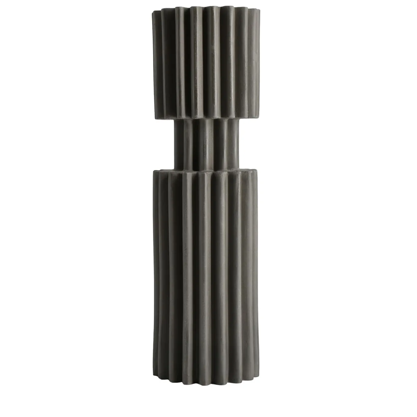 Defined by clean and simple volumes inspired by architecture, this stylish vase is part of the Le Torri Collection, “the towers”, named after its pieces’ elongated shape composed of cylindrical elements. It is molded and crafted by hand of anthracite-colored gres. The surface features textured grooves to reveal a superb interplay of lights and shadows. Available in other colors and sizes, please refer to the Concierge for options.