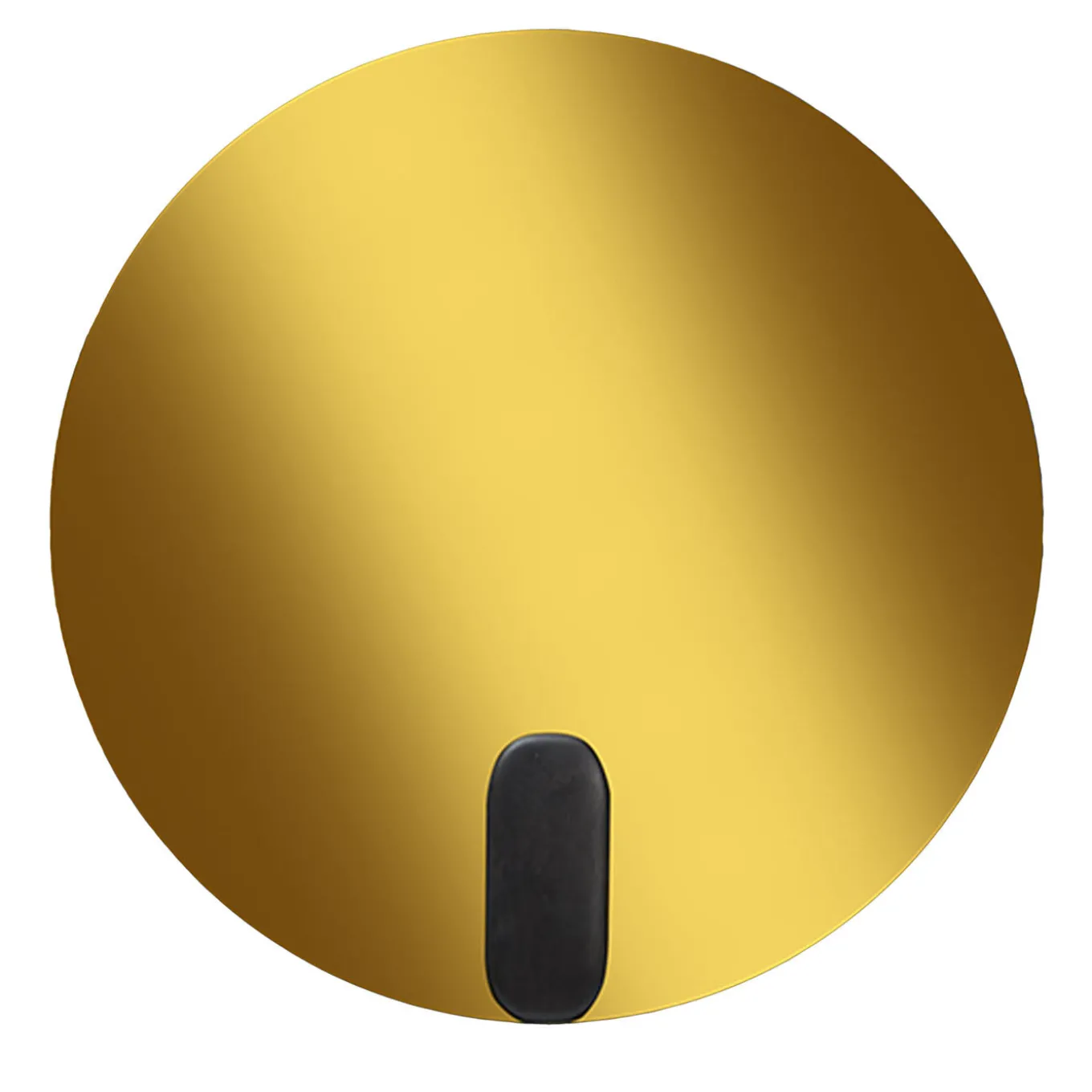 Add an accent of pure luxury to an entryway or living room console with this exclusive mirror that emanates a warm golden glow, instantly elevating any interior with the intrigue of an art piece. The minimalist, circular shape is characterized by a small black-finished element at its base, seemingly holding the gold mirror just like a clip. This captivating piece will best be displayed in modern and contemporary interiors with matching gold details.