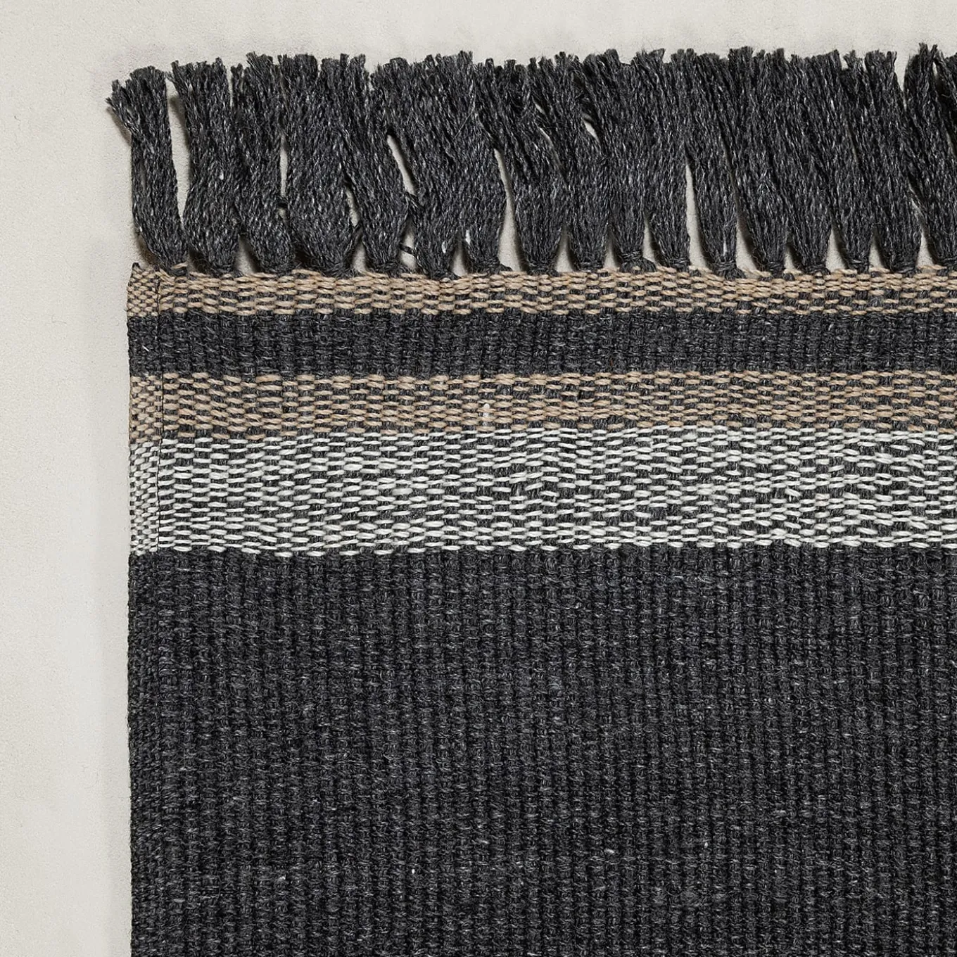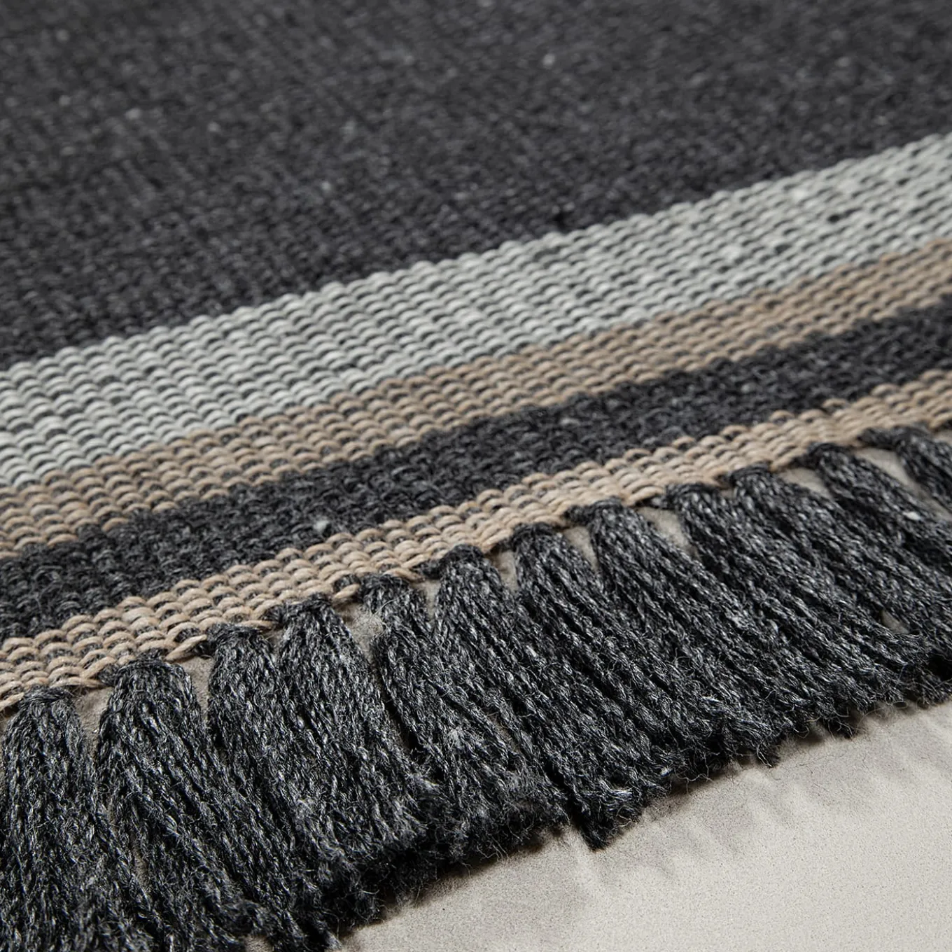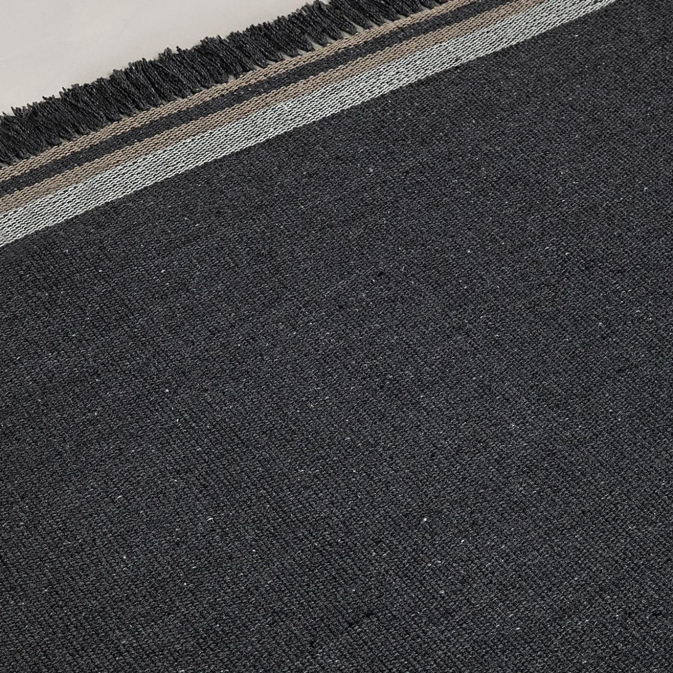With a subtle vintage aesthetic, Coco Charcoal evokes the timeless charm of artisanal textiles. Its warm, reassuring tones and delicate striped borders lend character to outdoor and indoor spaces. The flat weave structure ensures comfort and resilience, making it an ideal statement piece. Woven from 100% recycled PET, it merges refined craftsmanship with sustainability, offering a stylish, eco-friendly solution for modern living. Suitable for both outdoor and indoor use.