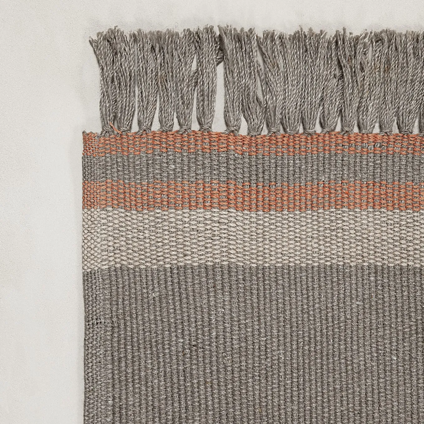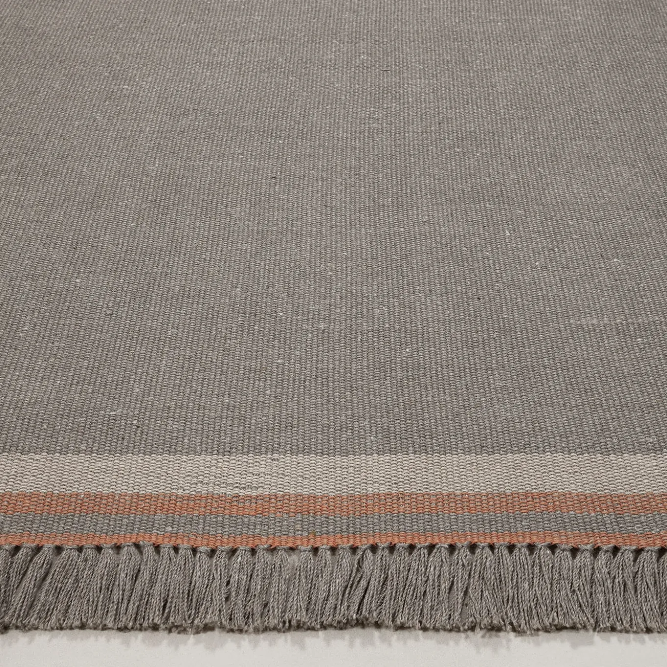 Capturing the essence of vintage textiles, Coco features a flat weave with a delicate border of coral and taupe stripes. The warm, earthy tones bring a cozy yet refined touch to indoor and outdoor spaces, while the sturdy composition ensures durability. Combining aesthetic appeal with practicality, it transforms any setting into an inviting retreat, offering a timeless charm rooted in artisanal tradition. Suitable for both outdoor and indoor use.