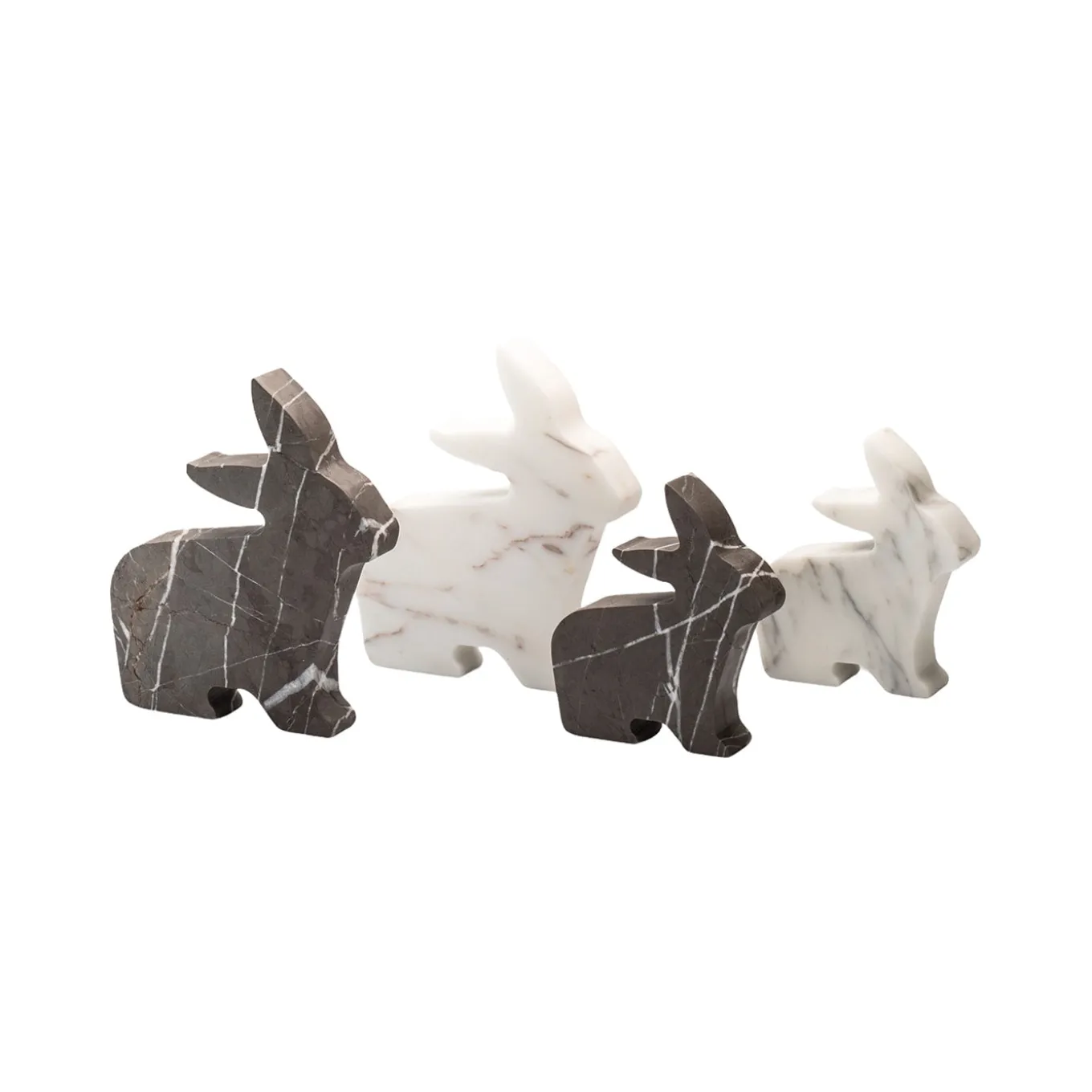 Minutely crafted from white Carrara marble, this design belongs to the whimsical Factory series of zoomorphic statuettes and paperweights designed by Alessandra Grasso. Shaped like a tender bunny and finished by hand for a smooth surface, it will make a playful statement on a desk, etagere, or bookcase. Available in gray marble and in a larger version, please check pricing details with the Concierge.