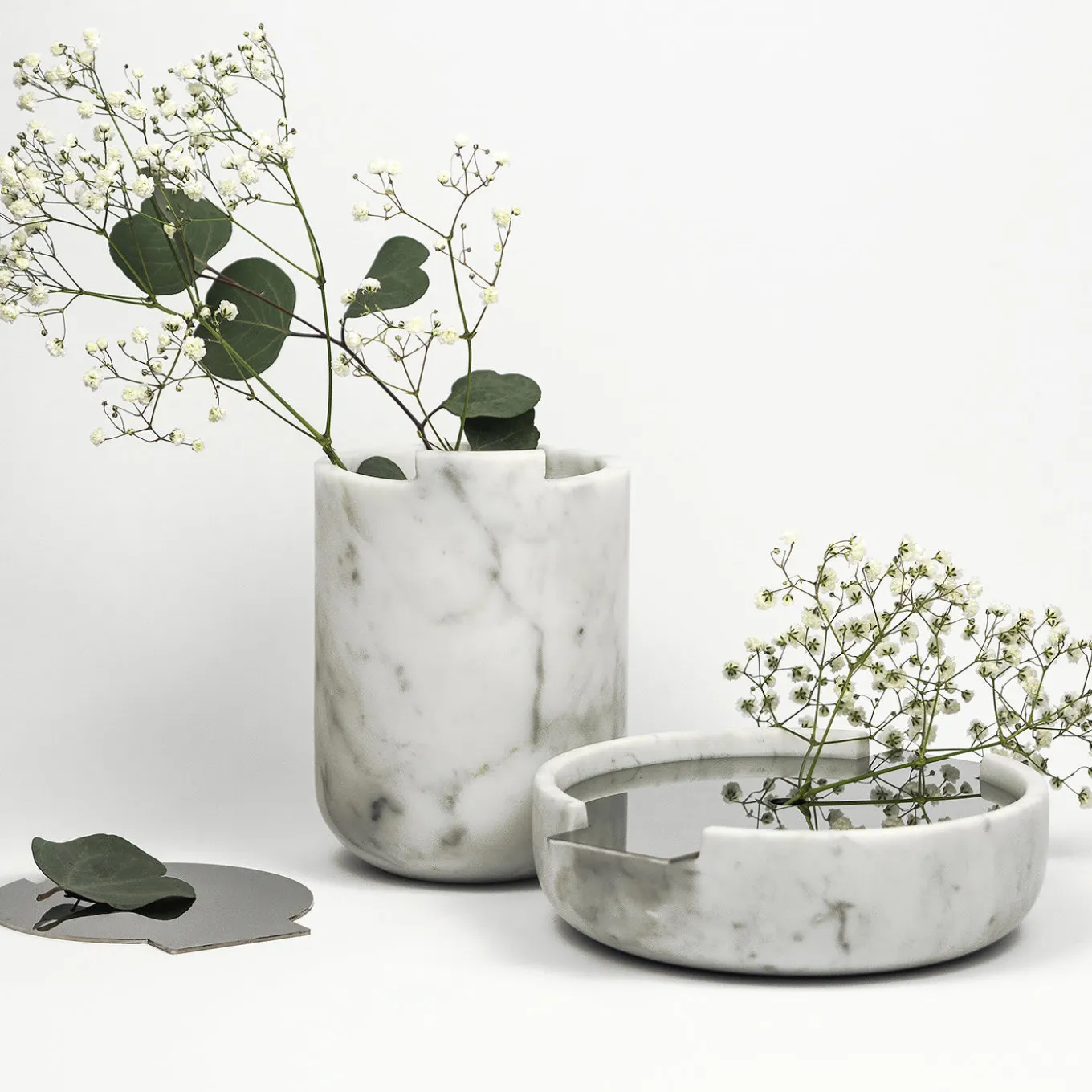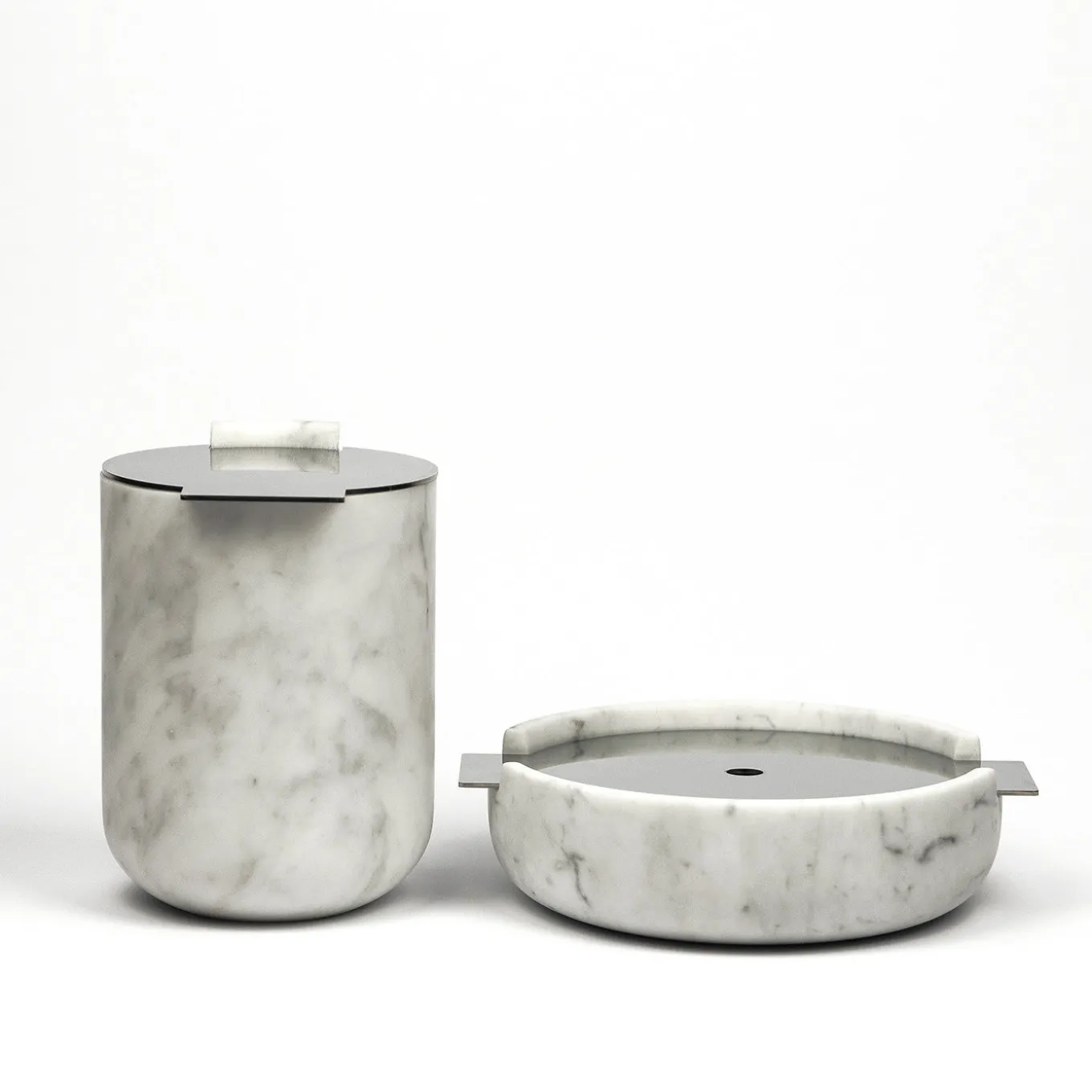 Crafted in machine-turned White Carrara marble, the Kitchen Accessories collection of kitchen containers recreates the iconic shapes of a pot, jug and table basket. With covers and lids in laser-cut Satin Steel, which may also be requested in different materials, an ancient memory is enhanced by the contemporary contribution of steel, adding modernity and functionality.