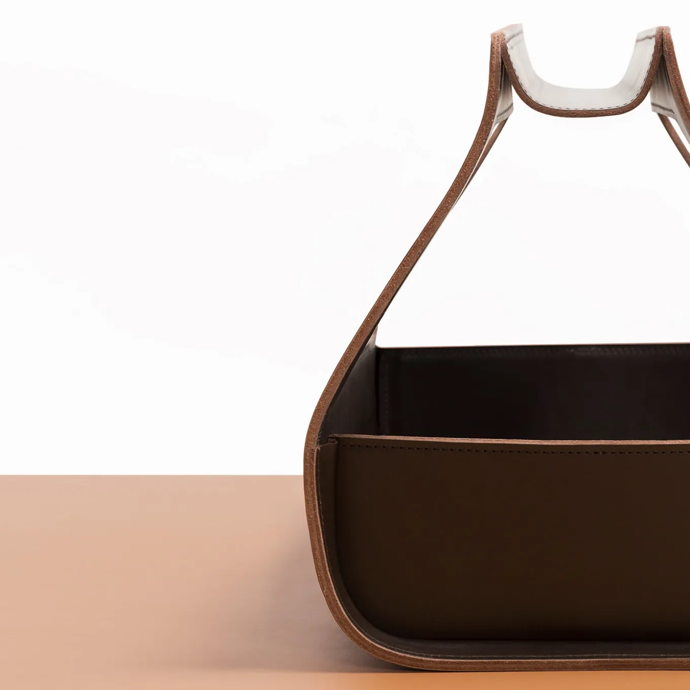 The timeless charm of saddle leather is deftly celebrated in this exceptional design by Gio Tirotto: a sleek and practical basket that can be used to store fresh towels, magazines, and other objects upon choice. Entirely handcrafted and enhanced with tone-on-tone stitchings, its brown color is customizable with one tone from the Rabitti 1969 palette: white, light grey, mud, graphite, black, mocha, brown, cognac, natural, cream, yellow, mango, red, navy blue, and loden green.